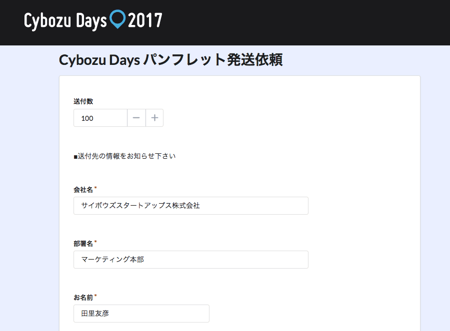 協賛企業がサイボウズ社にパンフレット発送を依頼するフォーム
