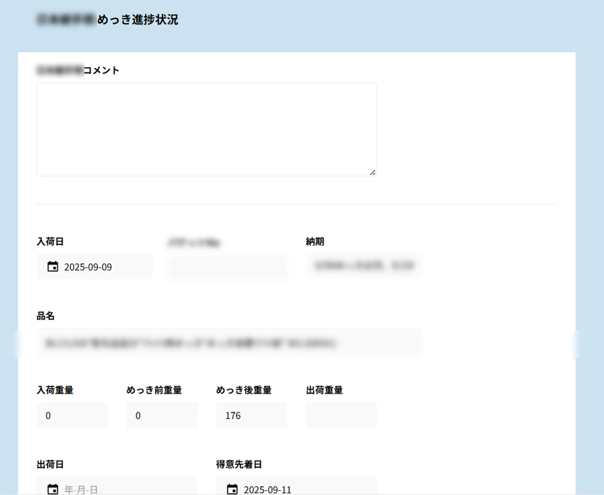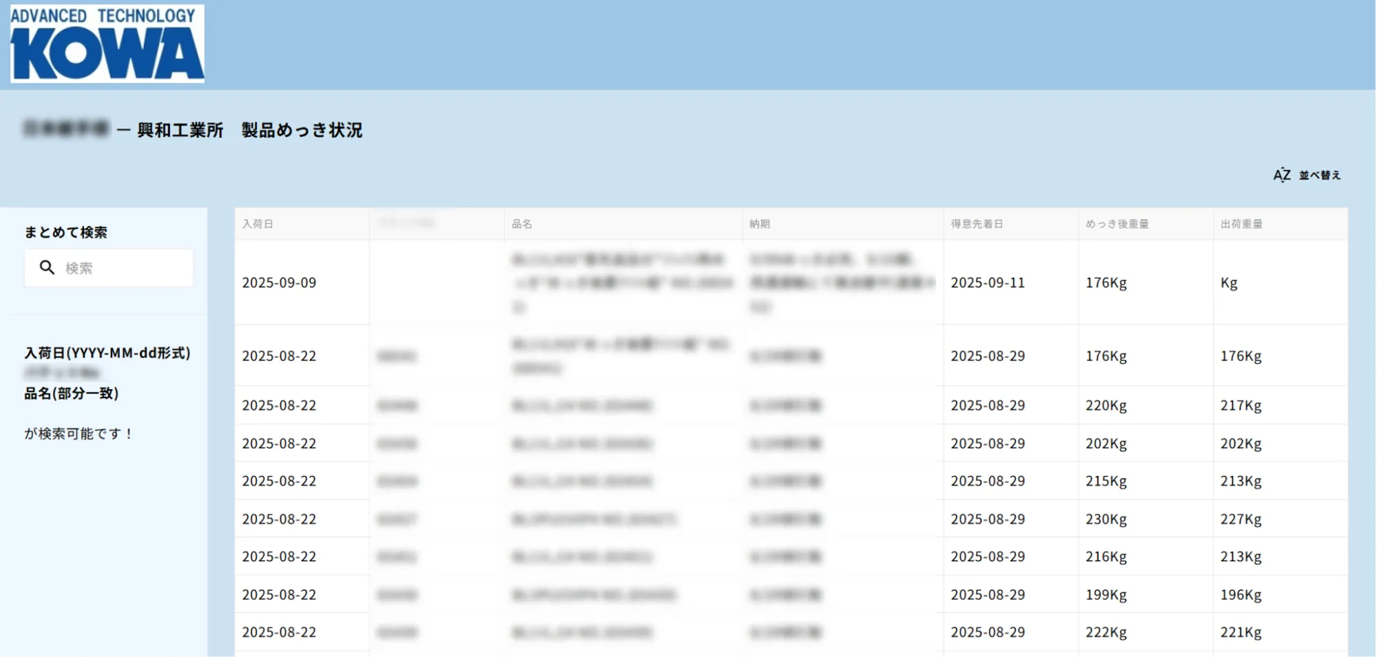 興和工業所では、これまでめっき処理の進捗確認は電話やメールのみで、顧客が現状を把握するには毎回担当者とのやり取りが必要でした。そこでkintone上に状況をまとめたアプリを作成し、一部顧客にはアカウントを付与して共有していましたが、kintone自体の導入が難しいという顧客もあり、そちらへのデータ開示は諦めざるを得ませんでした。