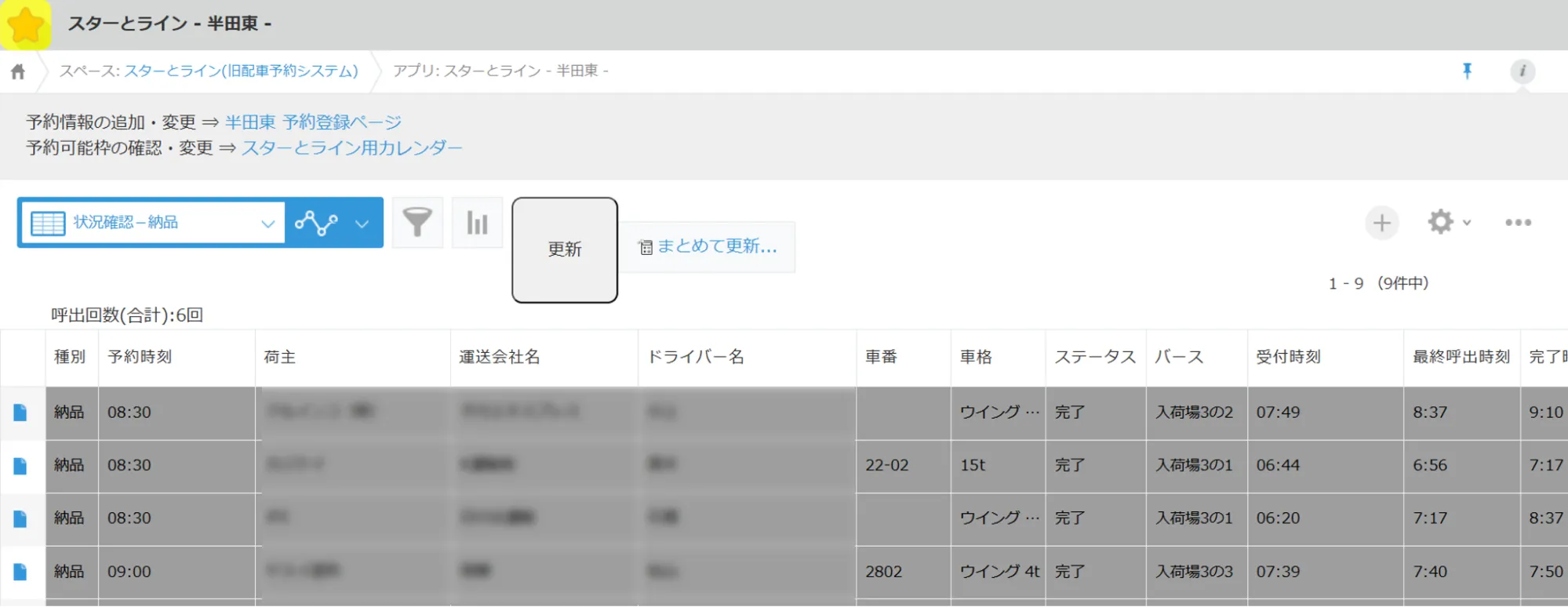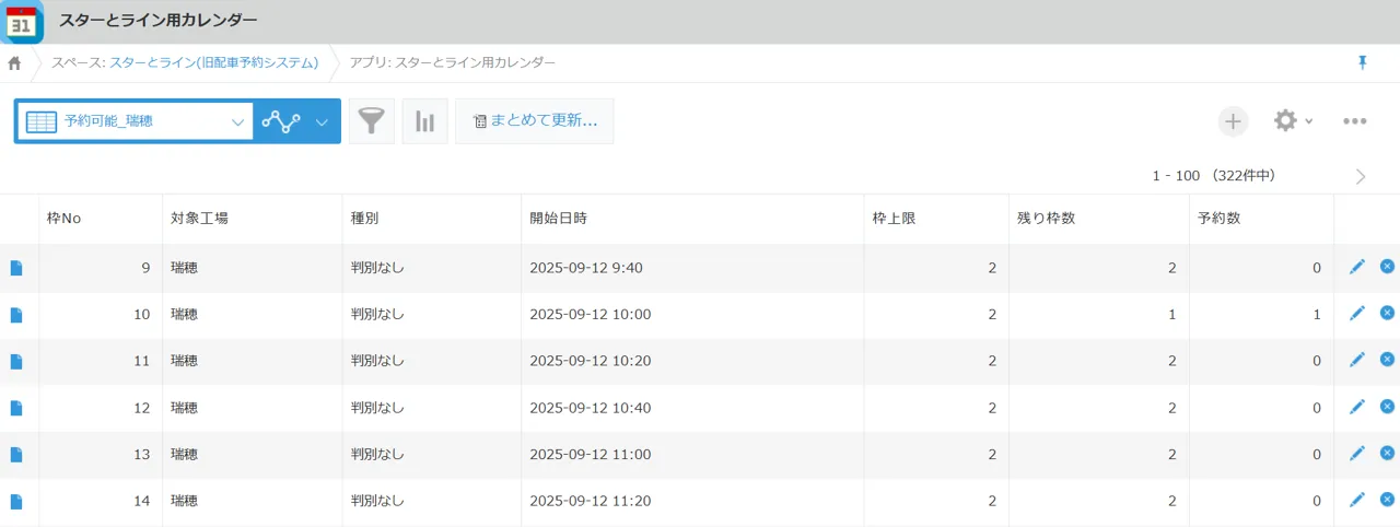 ▲現在使用しているkintoneの来場予約管理アプリ画面