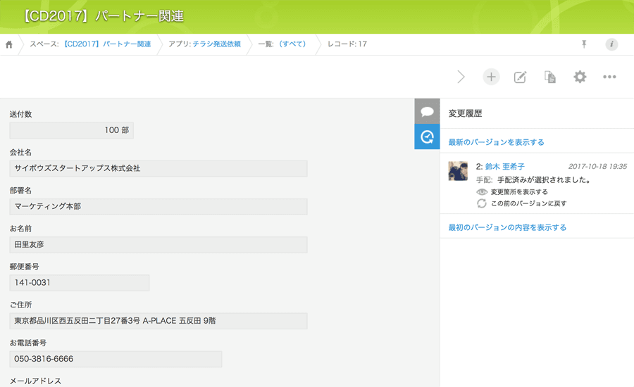 協賛企業がサイボウズ社にパンフレット発送を依頼するフォーム