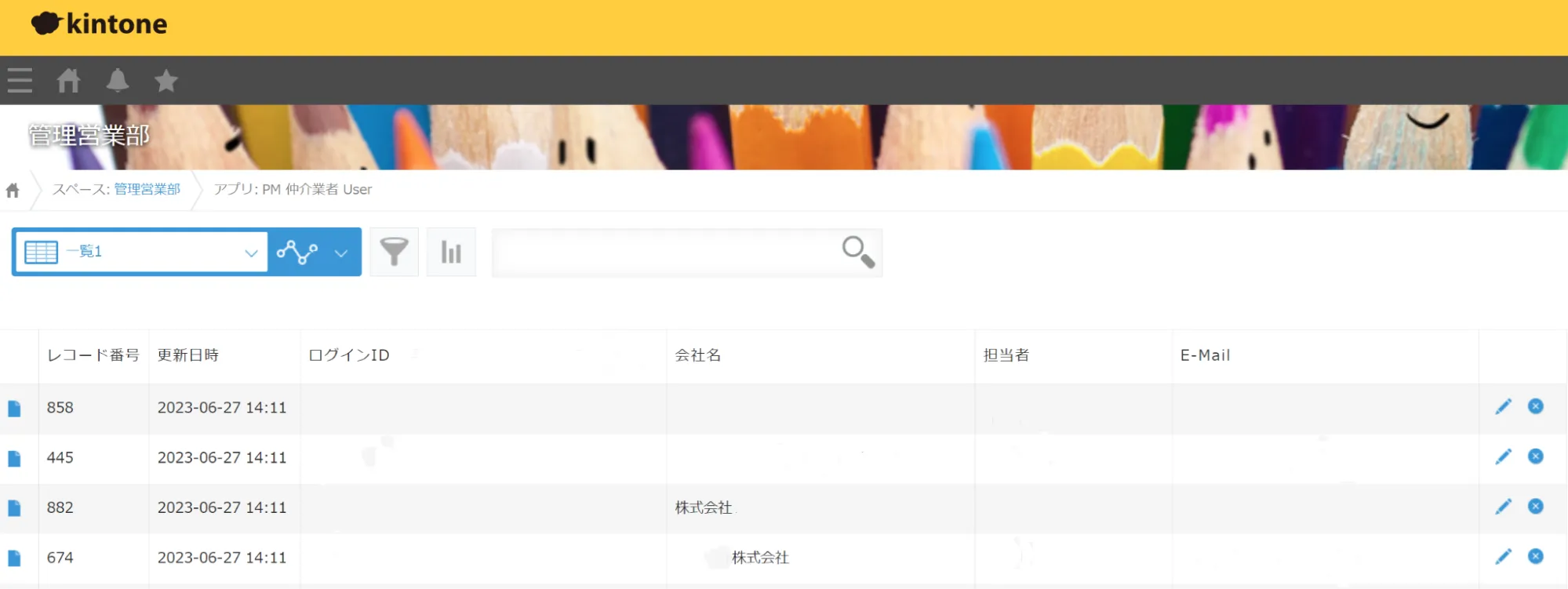 賃貸仲介会社の情報を管理しているkintoneマスタアプリ