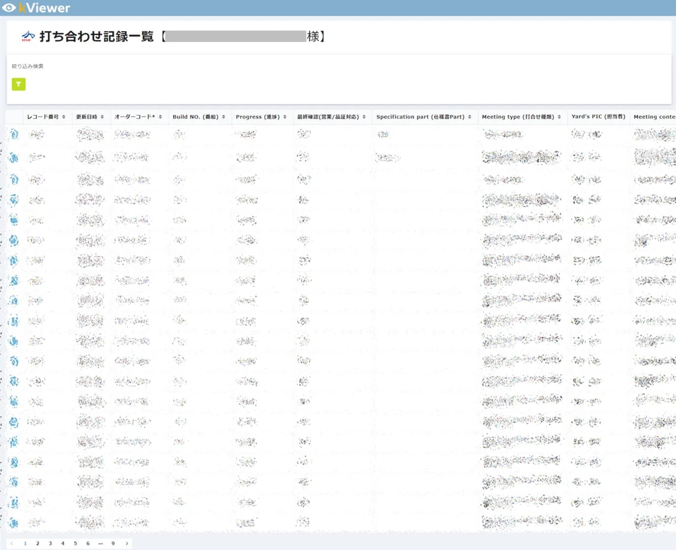 まずは、お客様ごとに情報を出し分けるkViewerのビューを作成しました。お客様の企業名で表示されるレコードを絞り込み、費用や図面番号といった情報の中から必要な情報のみkViewerで表示できるように設定したとのこと。それによりkViewerでは、船主様ごとに情報の出しわけが可能になったそうです。