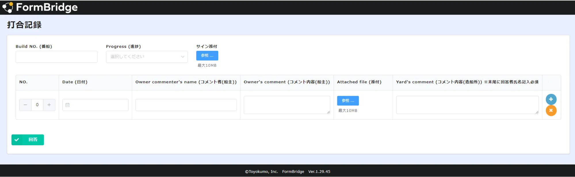 ▲FormBridgeで作成した打合せ記録の入力フォーム