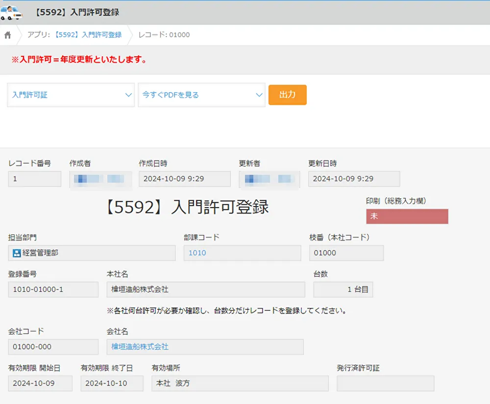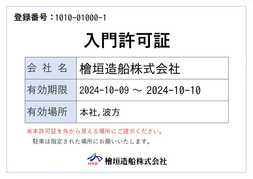 檜垣造船では、所定の場所に出入りするための入門許可証を適宜発行していますが、導入以前は作成フローそのものが決まっておらず、各自のテンプレートで作成していたそうです。