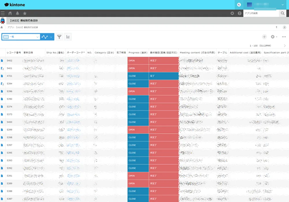 ▲kViewerで作成した打合せ記録の管理ビュー(お客様が閲覧)
