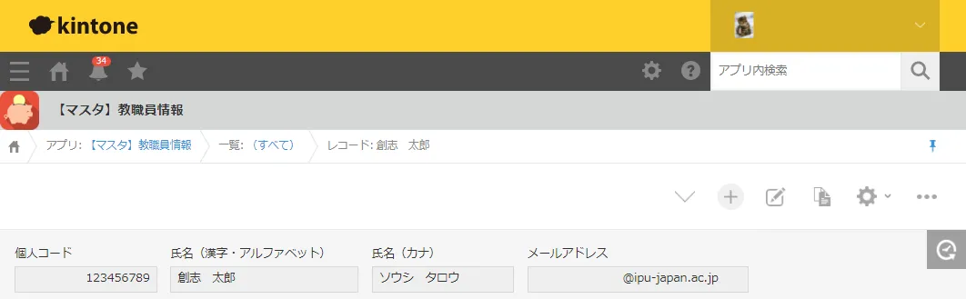 Toyokumo kintoneApp認証で管理するマスタ情報のアプリ画面