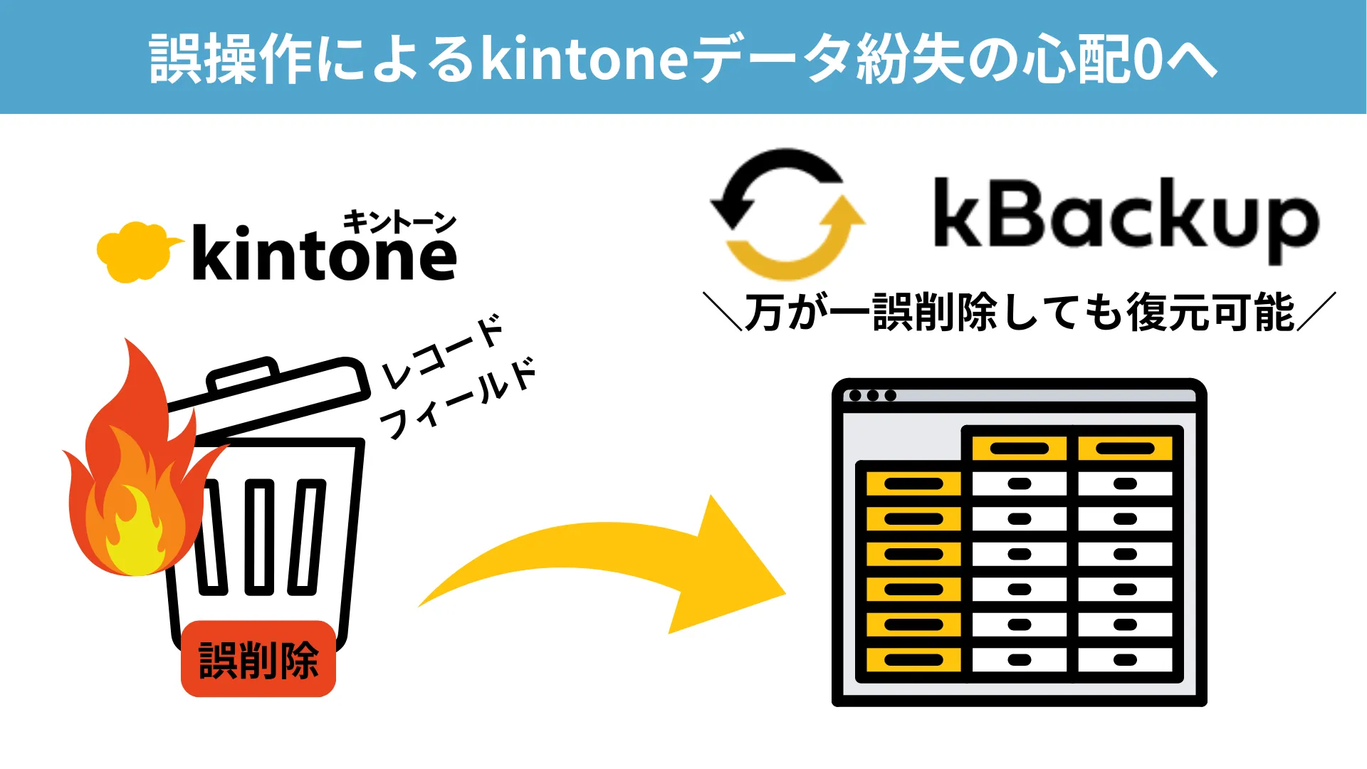 kintoneの標準機能では、任意のタイミングでバックアップを取得したり、レコード単位でデータを復元したりすることができないため、万が一のデータ紛失に対する備えが十分ではなかったのです。