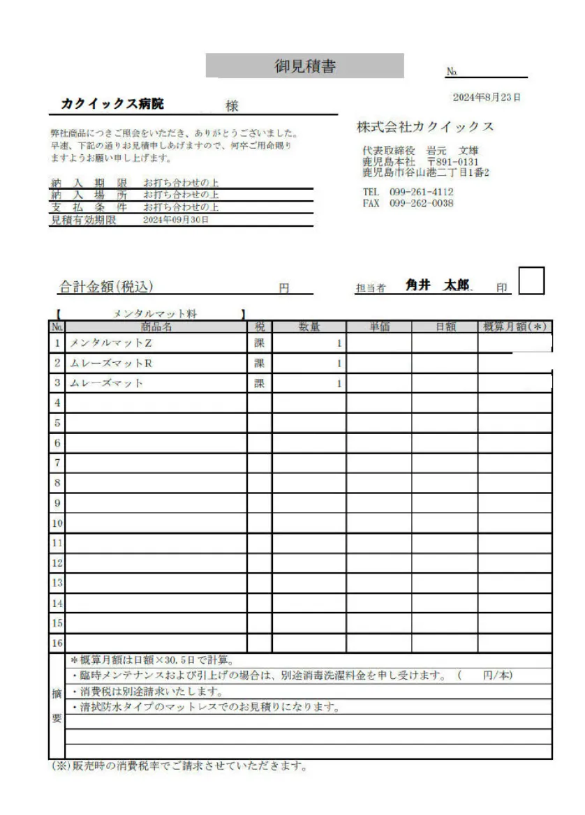 ▲PrintCreatorで出力した見積書。見積作成フォーム入力後、そのまま画面上でPrintCreatorで見積書を出力できる