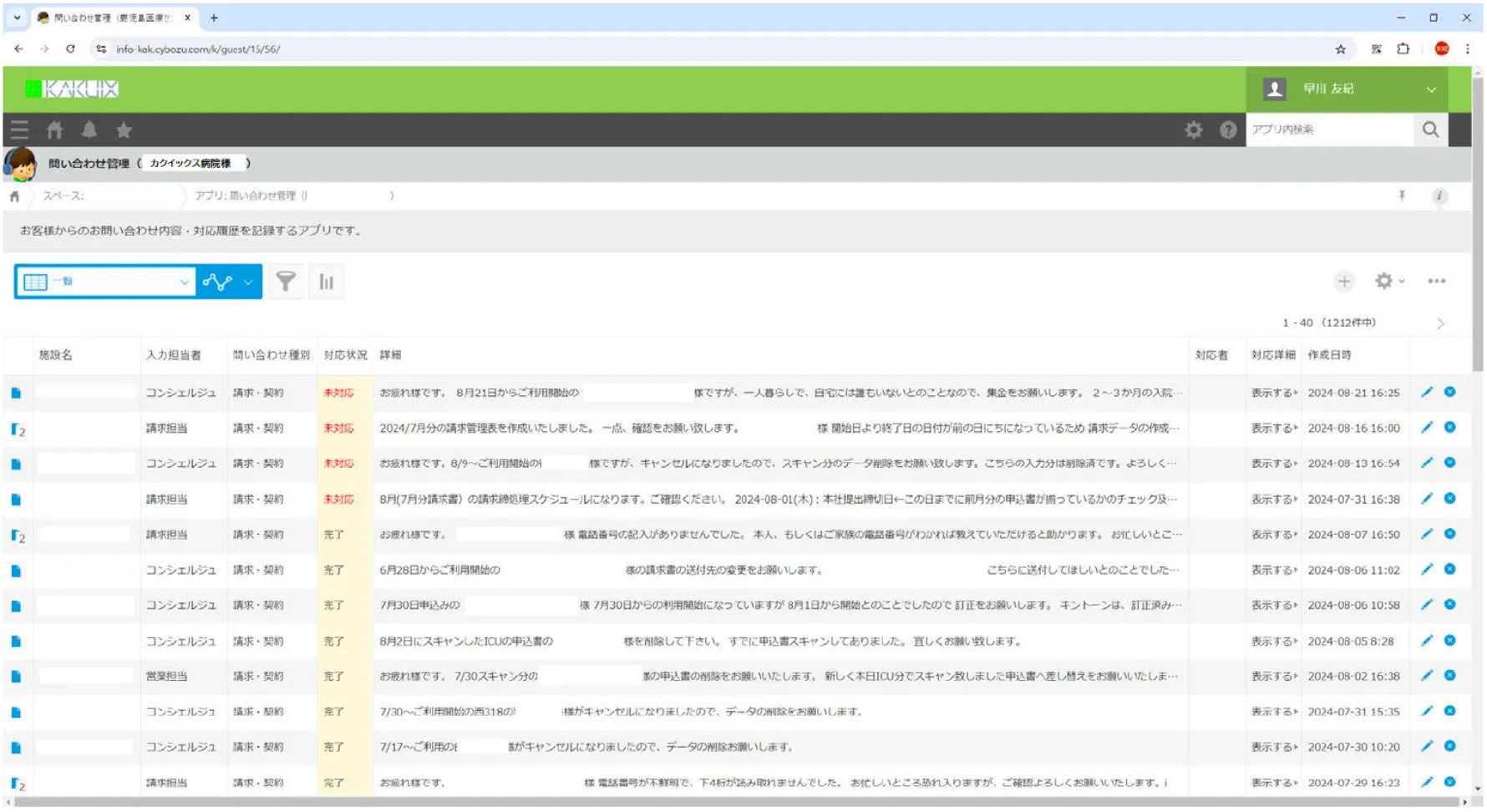 ▲病院内のコンシェルジュと社内の担当者がやり取りをする問い合わせ管理アプリ