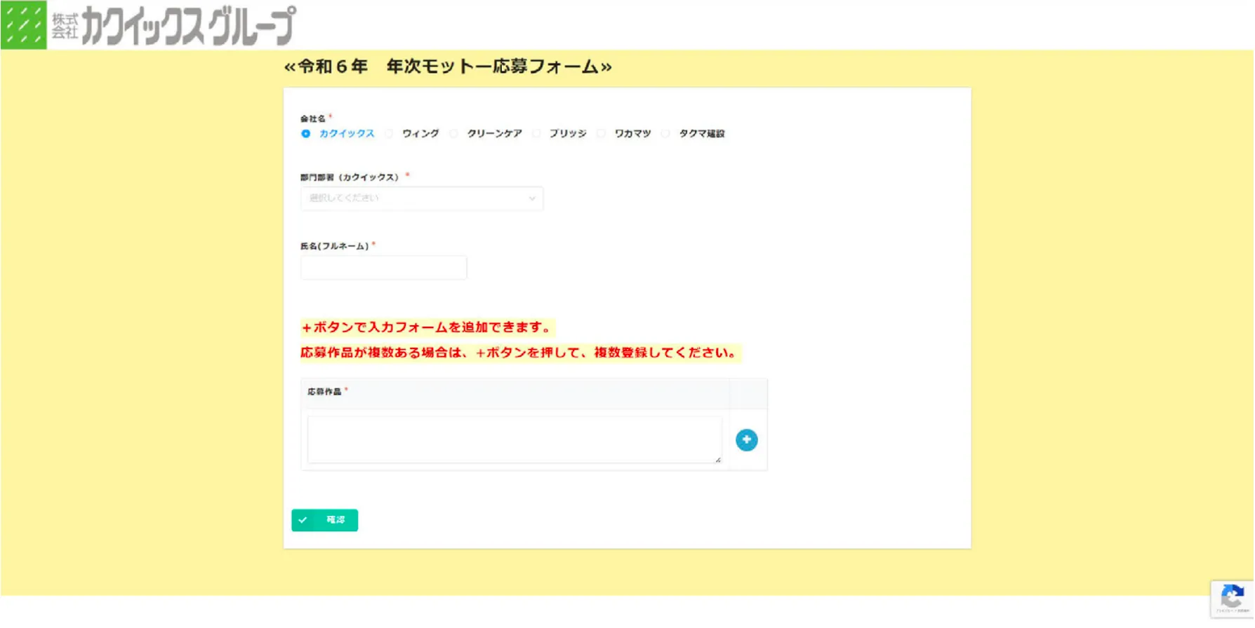 同社では1年に1度、社員から年次モットー(社内標語)を募集しており、その提出にFormBridgeを活用しています。
