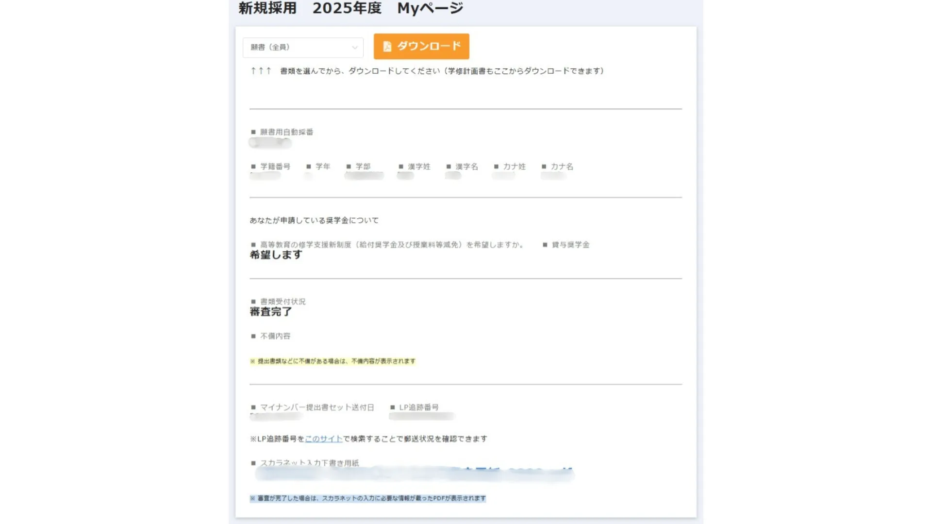▲kViewerによる2025年度新規採用マイページ。学生や保護者はここから審査状況が確認できる。