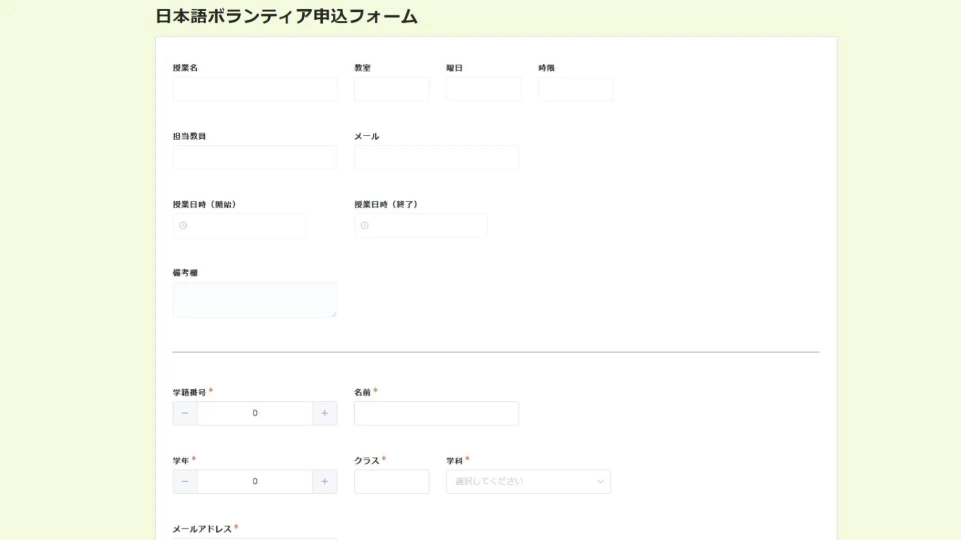 ▲学生が日本語ボランティアに応募するためにFormBridgeで作成された応募フォーム