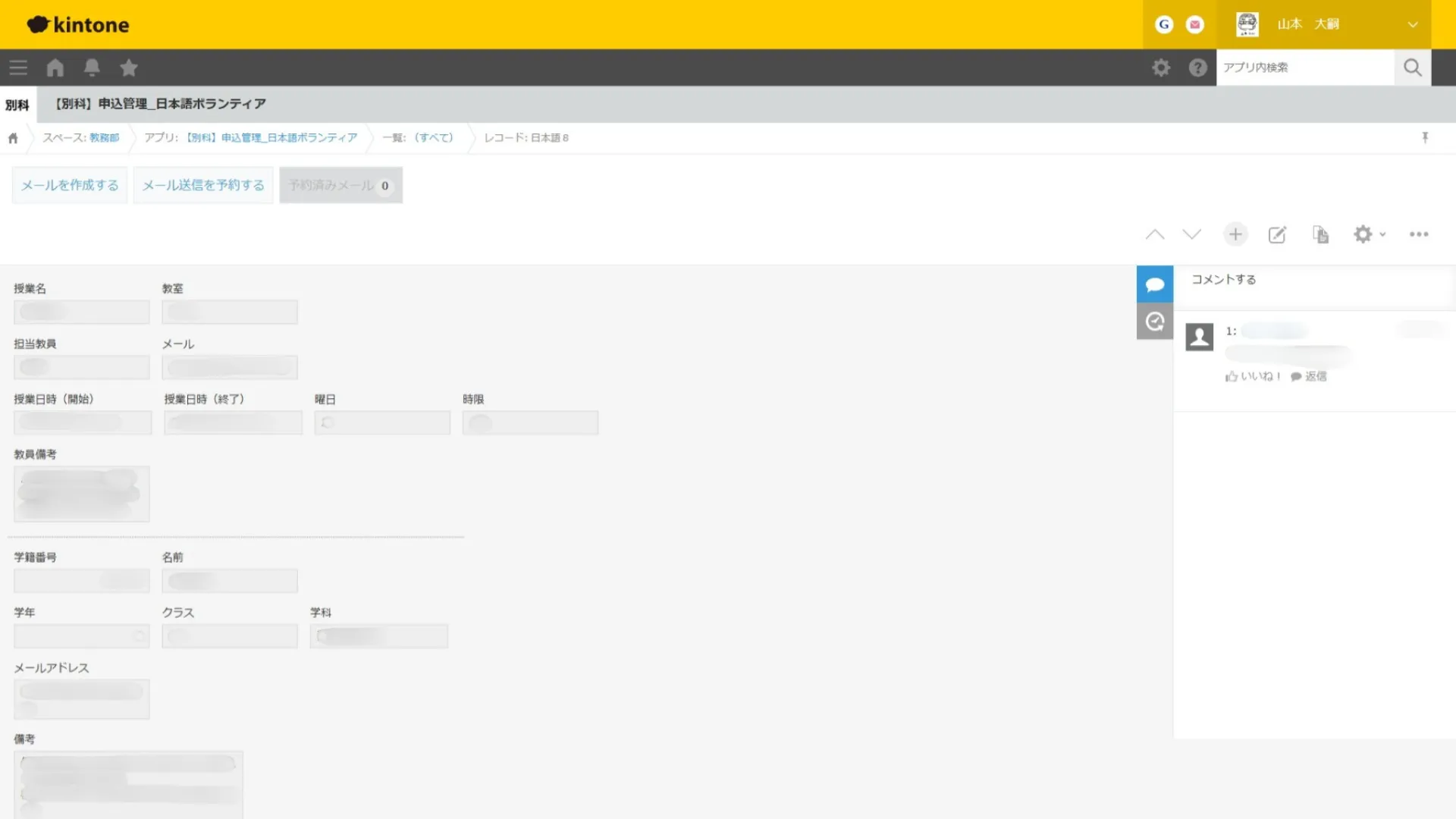 また関西外国語大学では日本語ボランティアの募集業務にも複数のトヨクモkintone連携サービスをご活用いただいています。
