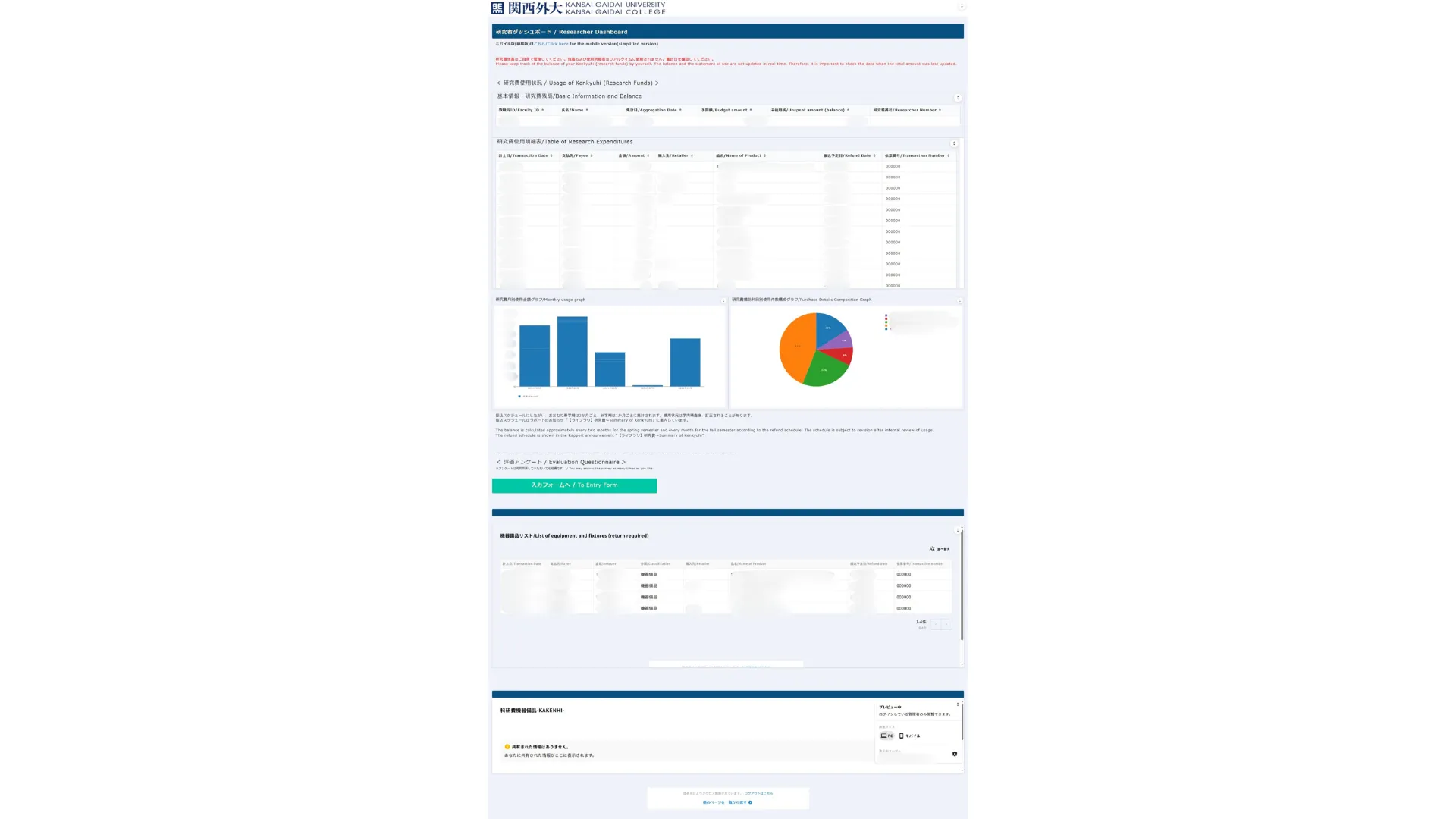 こうした状況を改善するため、関西外国語大学ではFormBridgeとkViewer、およびToyokumo kintoneApp認証を活用。kViewerのダッシュボードビューで先生方が自身の研究費情報を閲覧できる環境を整備しました。