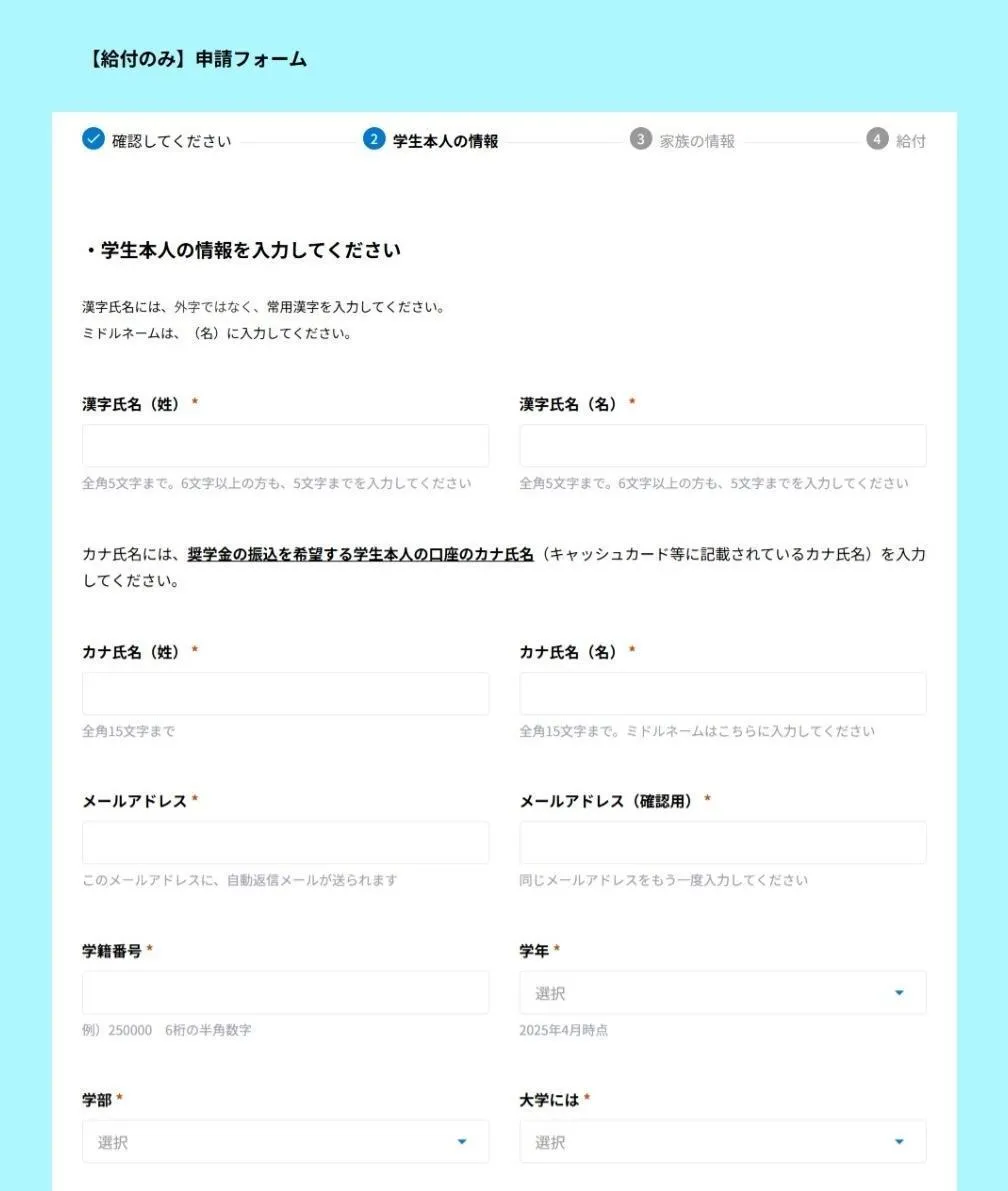 「奨学金は申請から給付まである程度の時間を要します。また普段書きなれない書式ということもあり、申請者から進捗や書き方に関する問い合わせを多数いただいていました。