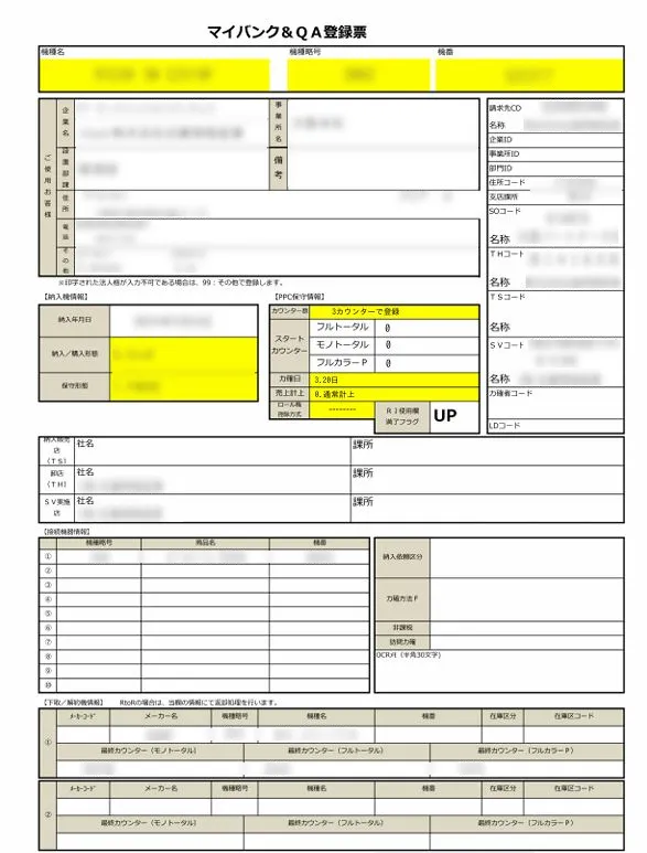 ▲マシン手配アプリからジャンプした先の登録票作成アプリ。マシン手配アプリで登録した内容に一部追記をし、登録票を出力する