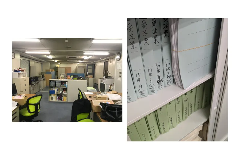 ▲当時の事務所の様子。紙の書類が綴じられたファイルが所狭しと並んでいた