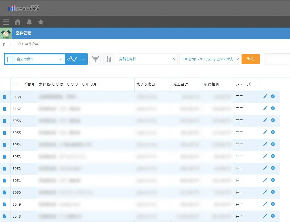 ▲案件管理アプリ。各案件の売上やフェーズを一目で把握することができる