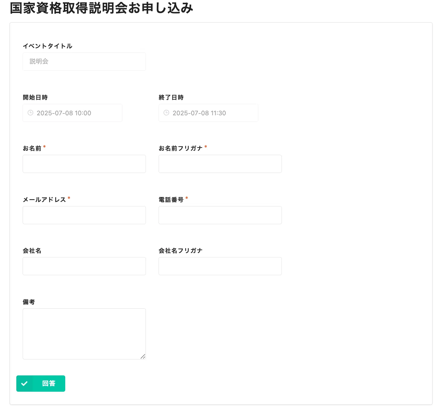 Webサイトに公開する予約カレンダーや申し込みフォームを構築し、予約枠の自動制御を行った
