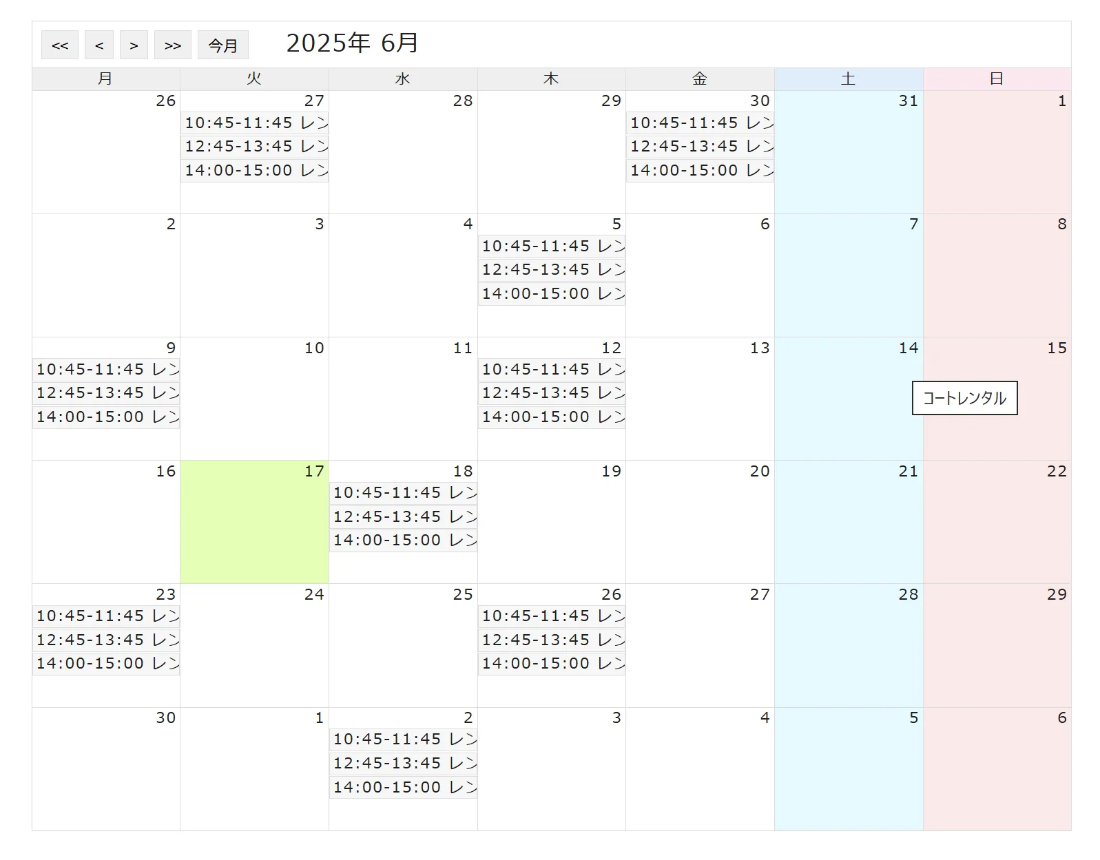 『DataCollect』によって更新された残席数のデータは、『kViewer』のカレンダー表示に即時反映されます。定員に達したコースは自動的に予約ができなくなるといった予約状況の管理を行っているそうです。
