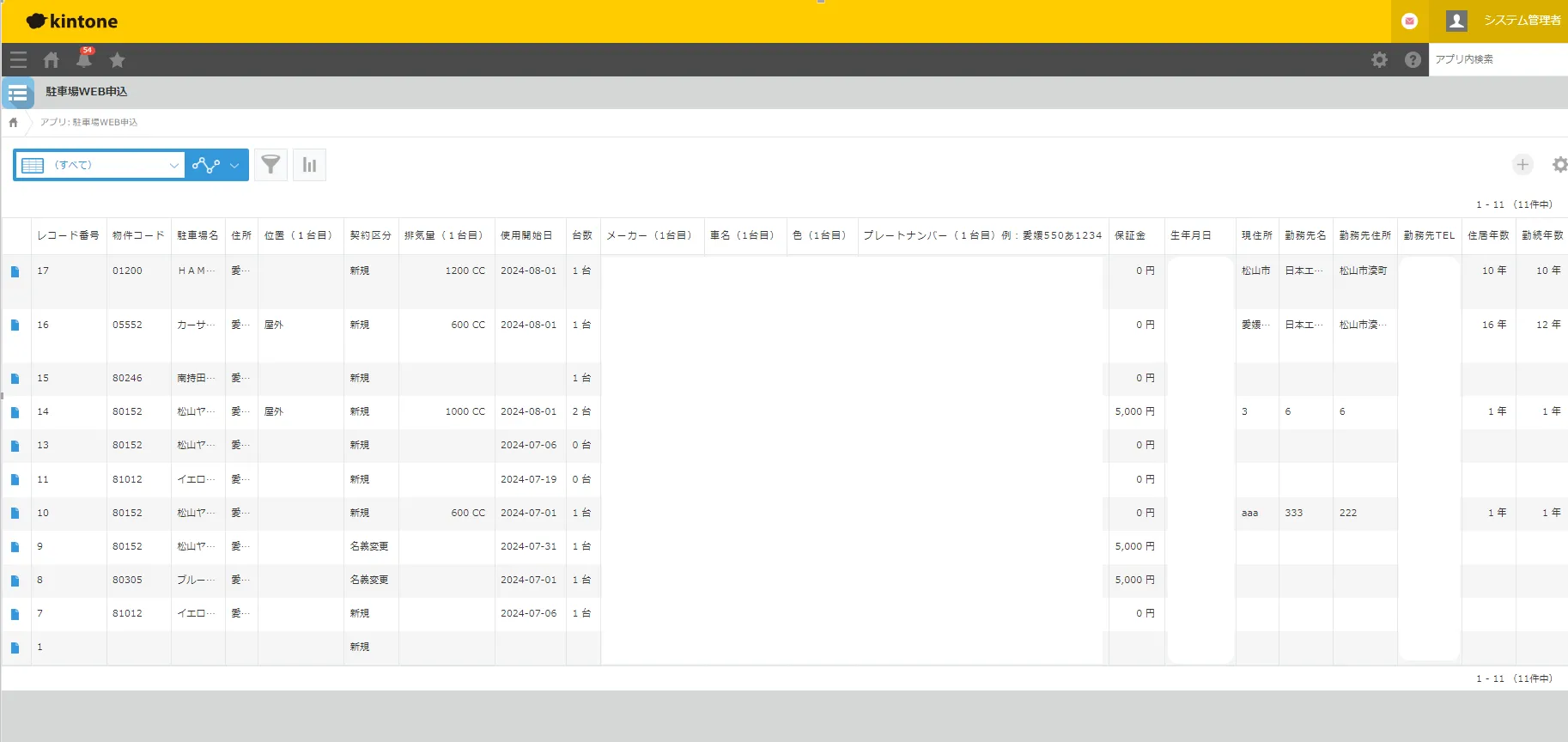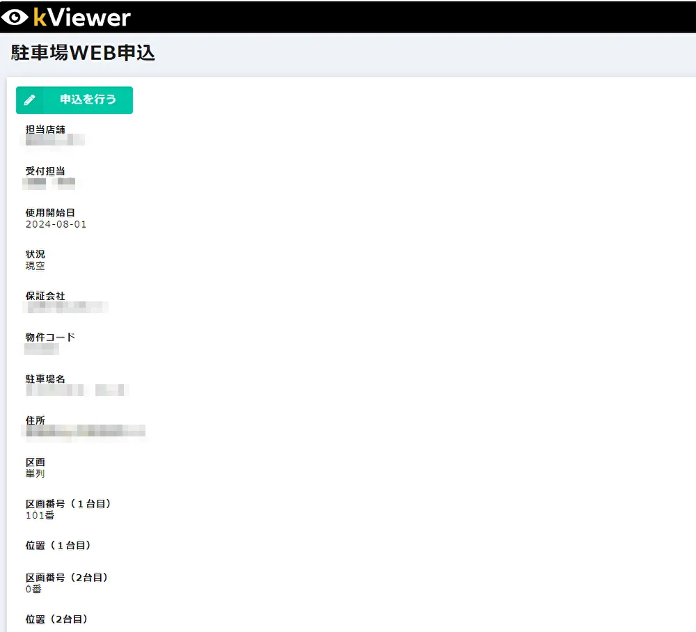 ▲kViewerのMyページビューに駐車場WEB申込フォームの入力内容を反映