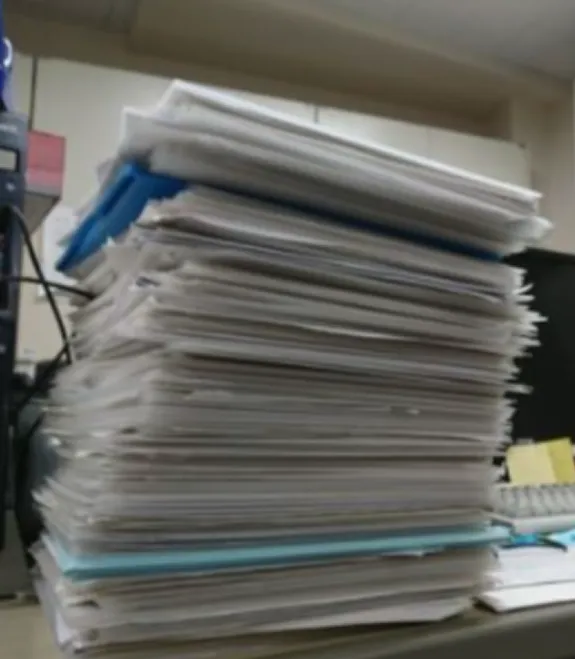 ▲退室が多い1-3月には書類の山ができることも