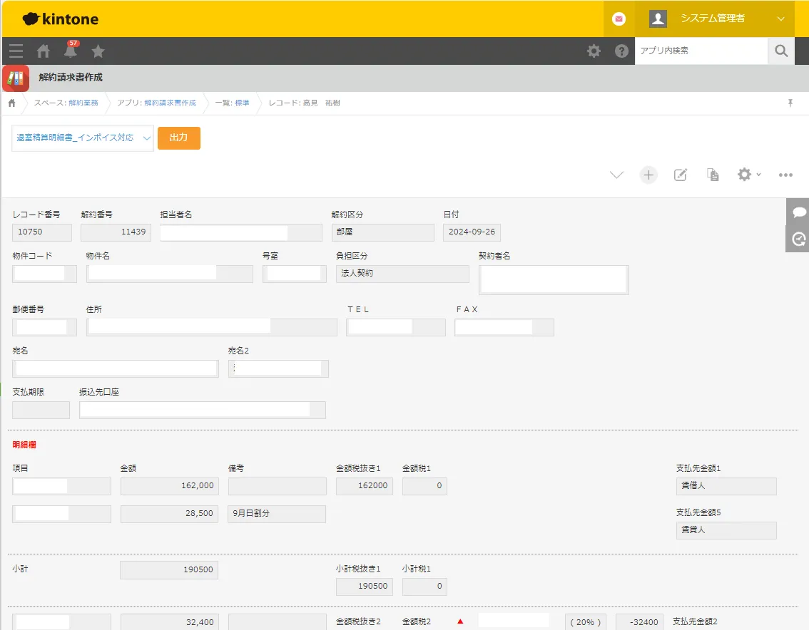 さらにPrintCreatorでフォーマットを用意し、kintoneの情報も参照しつつ、リフォームの作業内容をまとめた書類や、退室明細書などの書類をスムーズに出力可能になりました。