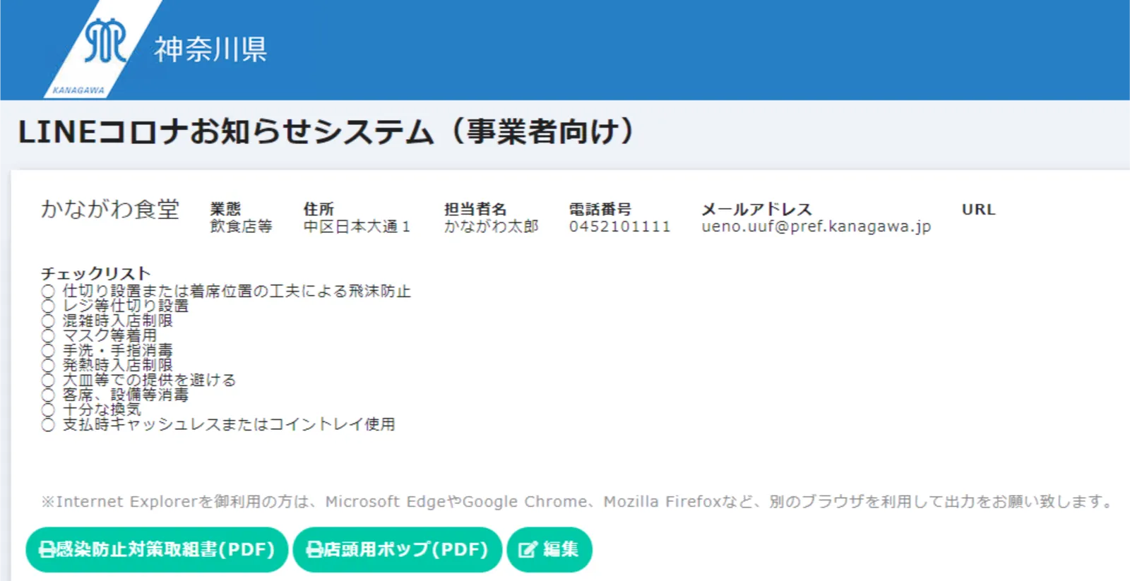 ▲フォームを登録するとマイページから感染防止対策取組書やポップの発行が可能