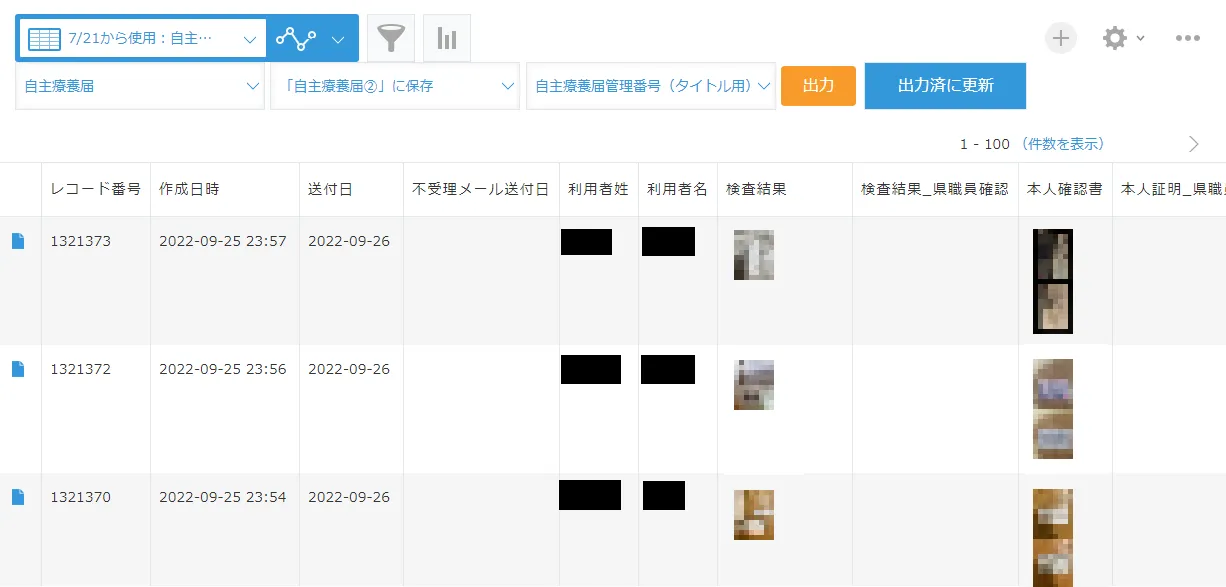登録されたデータは県が内容を確認し、陽性と確認できた場合、学校や勤務先などに提出できる自主療養届をPrintCreatorで発行し、kMailerで申請者に送信していました。