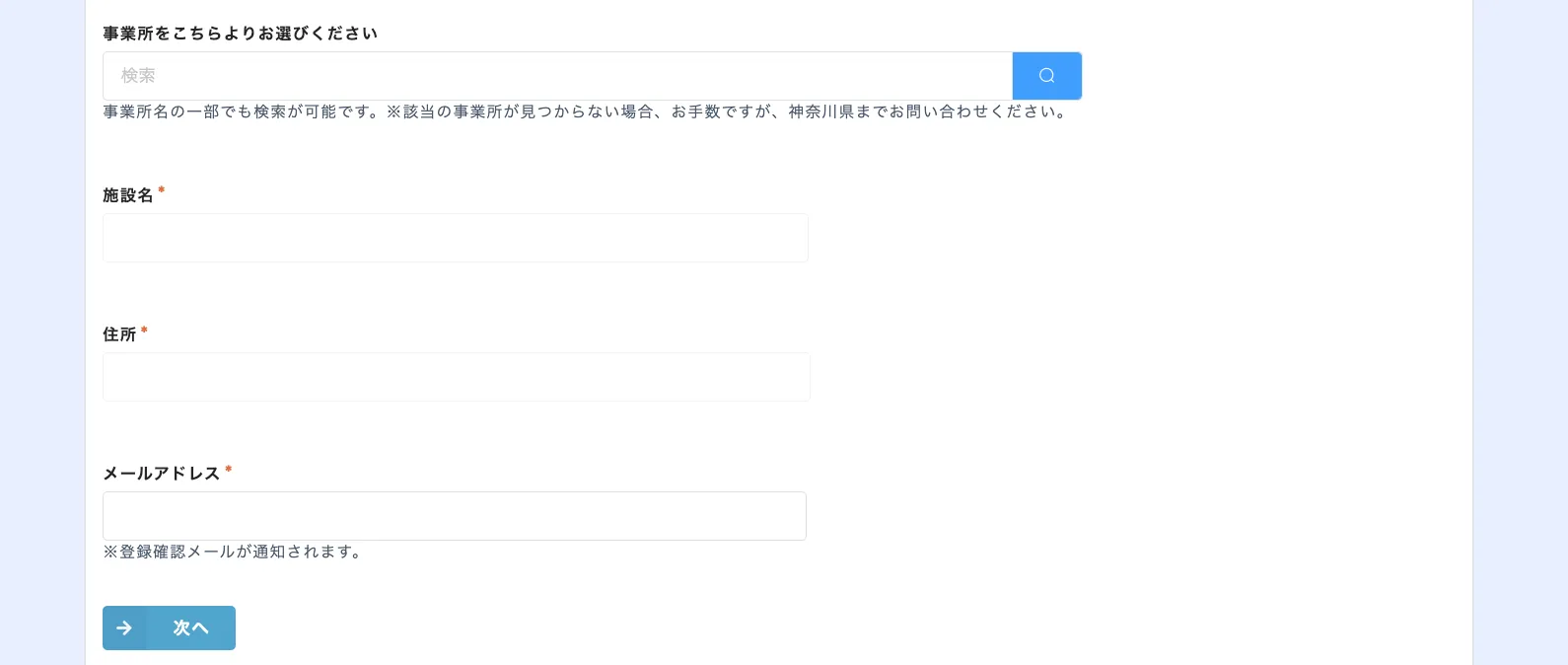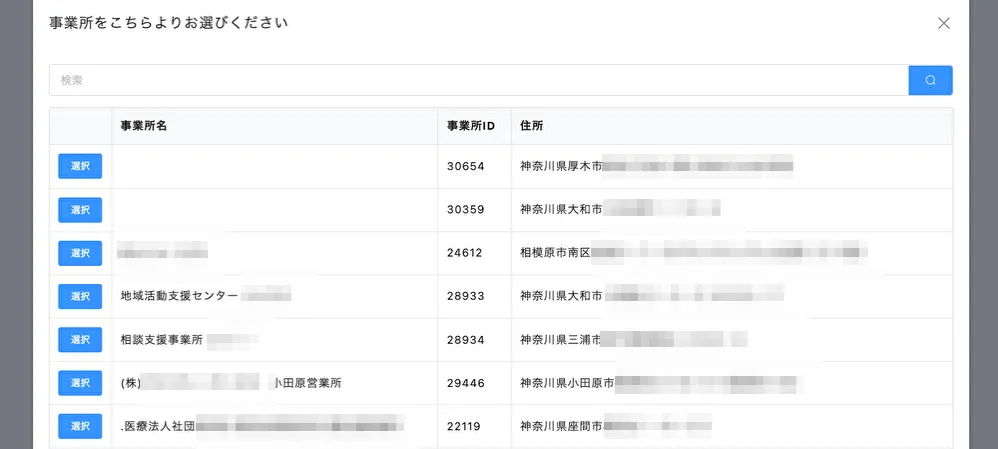 フォーム上ではkViewerのルックアップ機能で事業所を検索できます。事業所名を選択することでそのフォームの回答に事業者IDが裏側で付与され、フォームで提出された情報が自動で事業所ごとに整理される仕組みにしました。