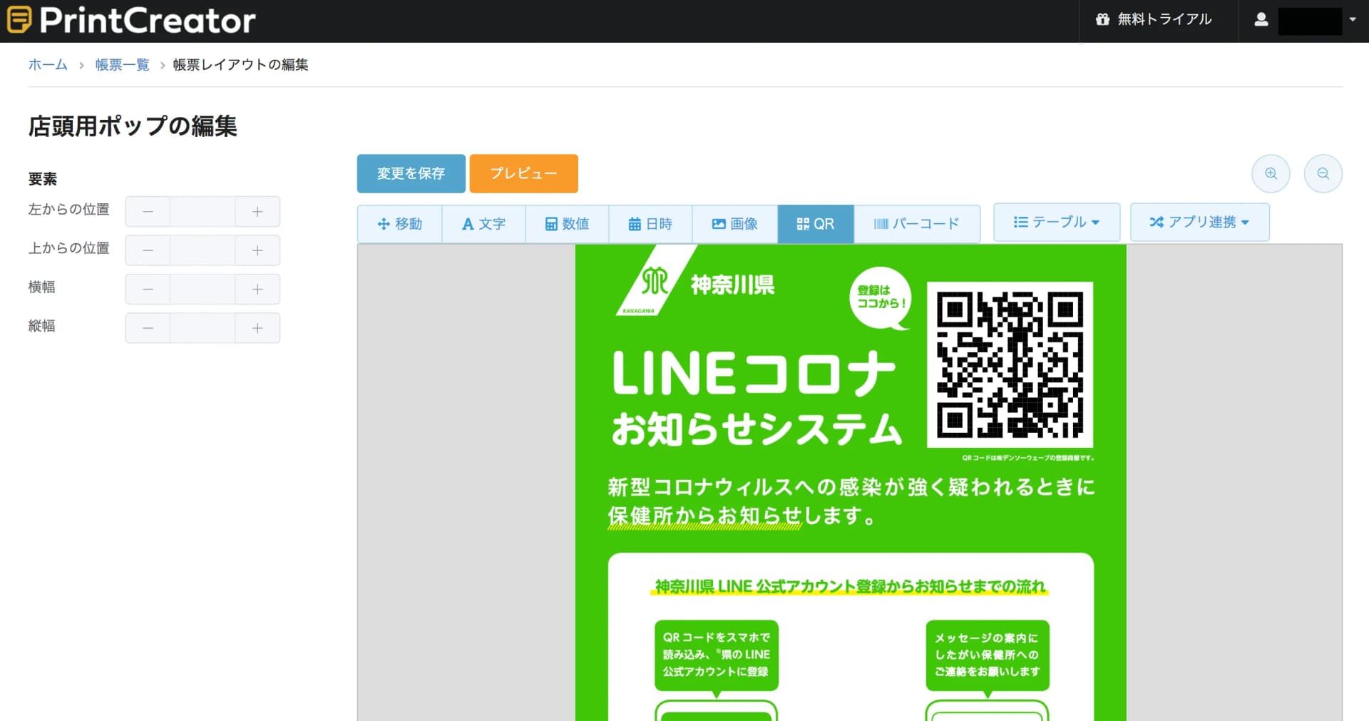 PrintCreatorで出力印刷した「感染防止対策取組書」を店頭などに貼り出し、来店した人たちにQRコードを読み込んでもらうことで行動履歴が残る仕組みです。
