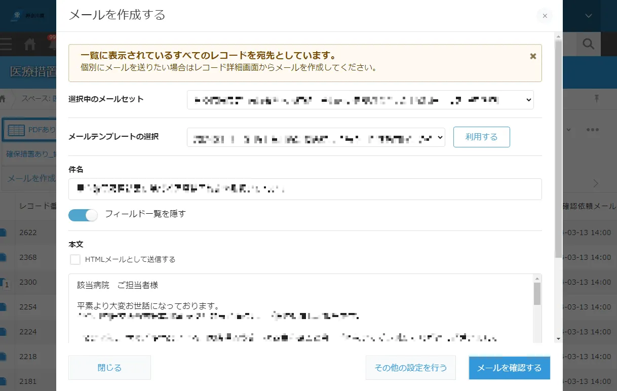作成された帳票を医療機関に送付するときはkMailerを使用します。