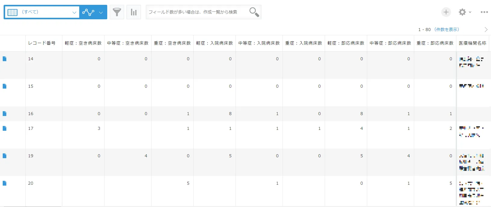 ▲病院と病床数の情報共有を行っていたkintoneのアプリ