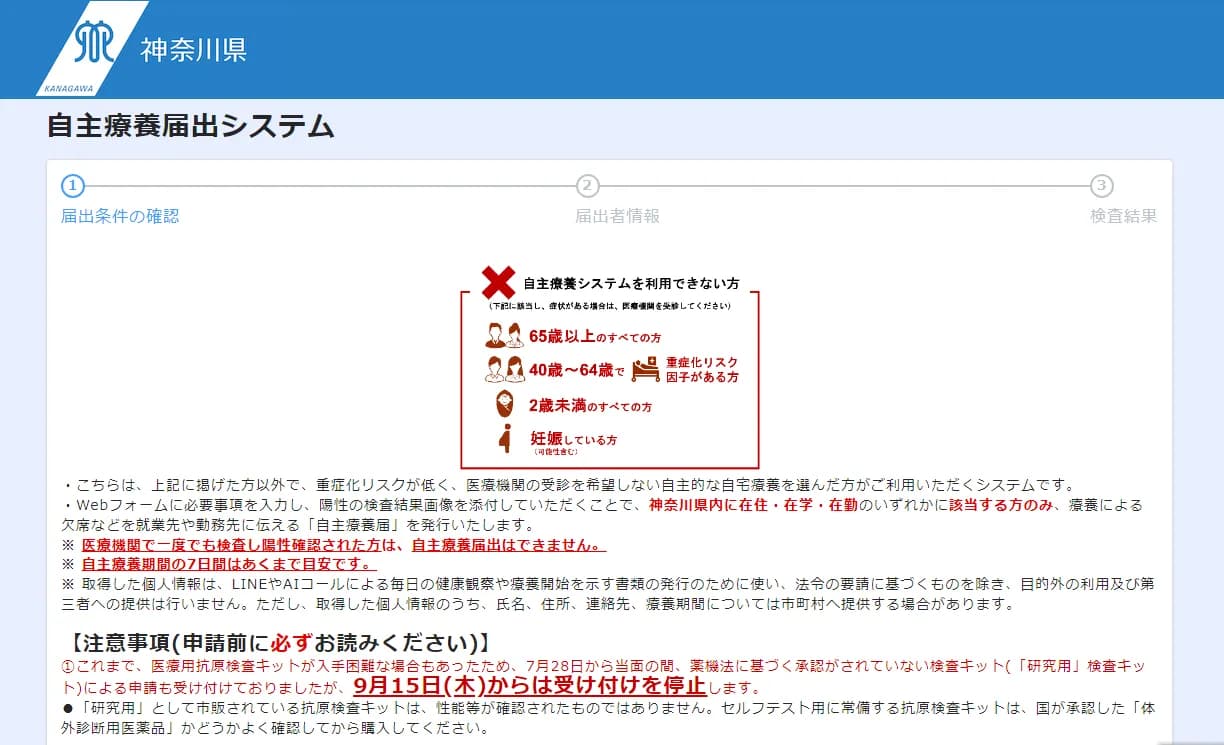 自主療養届出システムは、薬局やドラッグストアで購入した抗原検査キットの結果が陽性だと判明した場合、FormBridgeで検査結果や必要情報を提出することで申し込めます。