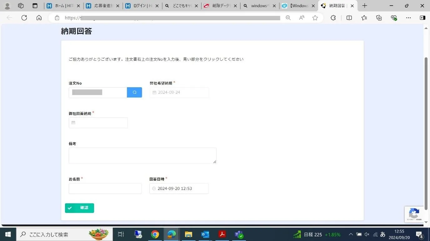 ▲FormBridgeで作成した納期回答フォーム。メール本文からURLをクリックし、番号を入力するだけでルックアップ機能により各社の希望納期が表示される。