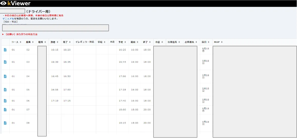 ▲FormBridgeに入力された情報のkViewerの画面。配達時間など配送に関する情報が集約されているので、配送パートナーに確認する必要がなくなった。