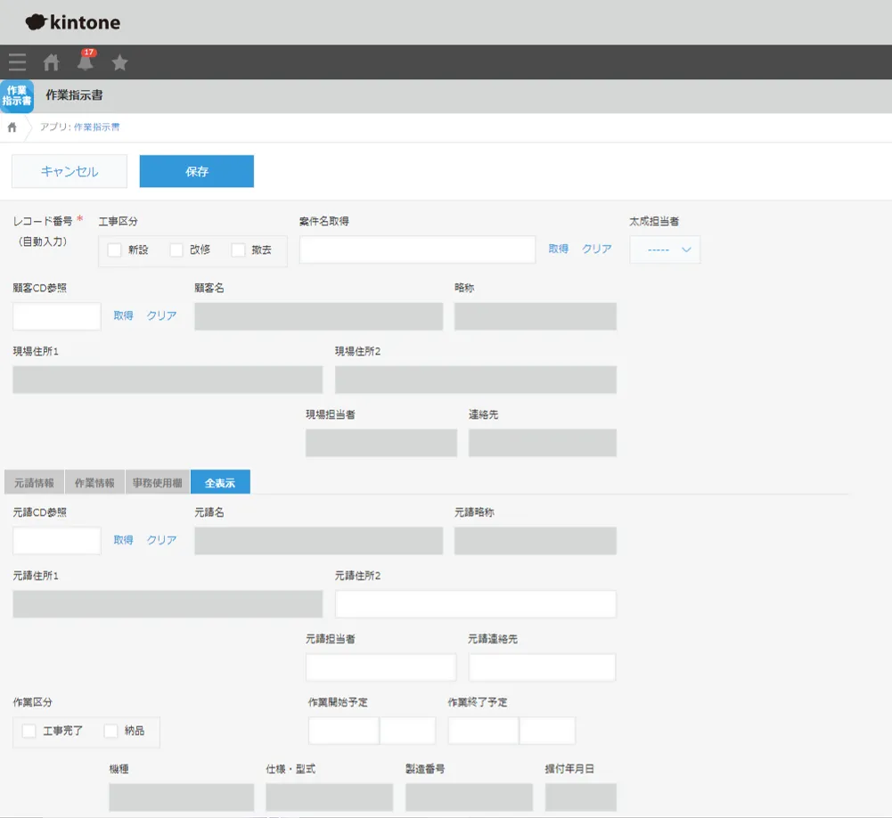 作業指示書は資材や機械の発注先やその状況、施工先や元請け情報、作業内容などのほか、担当者名や連絡先など表記すべき内容が多い帳票です。そのため作成に時間がかかっていましたが、kintoneに置き換えることでルックアップや入力補助などをうまく活用。ボタン一つでPDF化できるなど、作成から出力までの工数はこれまでの約1/3に抑えられているそうです。また現場でもスマホやタブレットで確認しやすいなど、当初の大きな懸念事項も払拭できました。