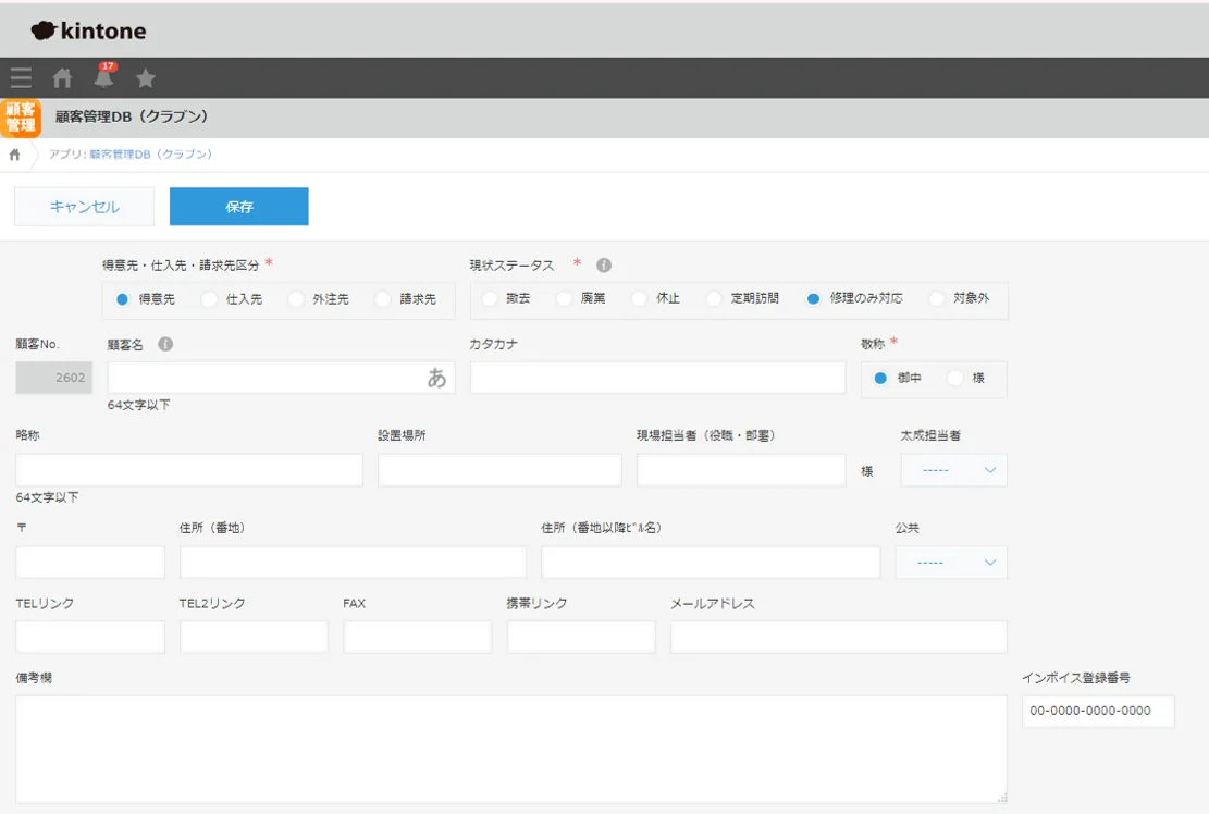 太成電技ではこれまで顧客情報やメンテナンスの管理を他社クラウド型サービスで管理していました。取り扱う10種類の機械をコードで管理し、それぞれ必要な項目が紐づくように設定していましたが、システムの問題でデータ連携がうまくいかずに困っていたそうです。また法律改正等の理由により、記載項目の追加が必要になった場合には膨大な時間がかかるなど、カスタマイズ性にも課題を抱えていました。
