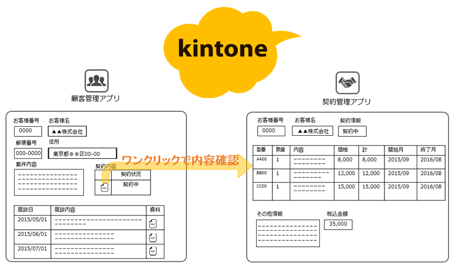 「顧客管理のアプリに企業ごとのレコードをつくり、それとは別に契約管理のアプリも作成し、契約実績があれば、顧客管理のアプリに表示されるように紐付け、顧客ごとの実績の有り無しやいつ頃どういう契約がどのくらいあったのか、一目で確認できるようにしています。」