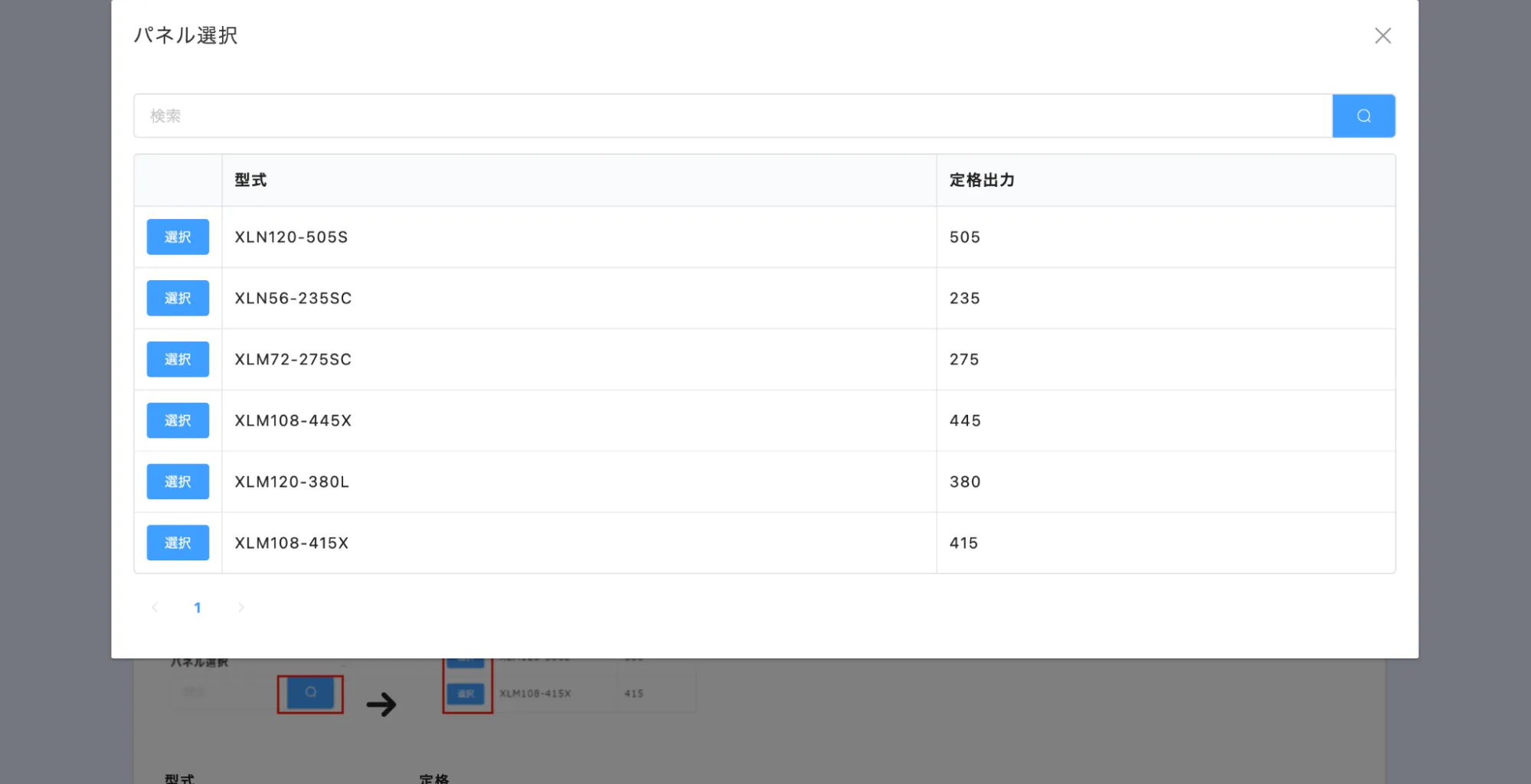▲出力対比表 出力用フォーム画面。パネル選択をクリックすると、kViewerのルックアップ機能を使ってマスタデータから引用された型式がフォームに自動入力される。説明書きも多くわかりやすいUIとなっている。