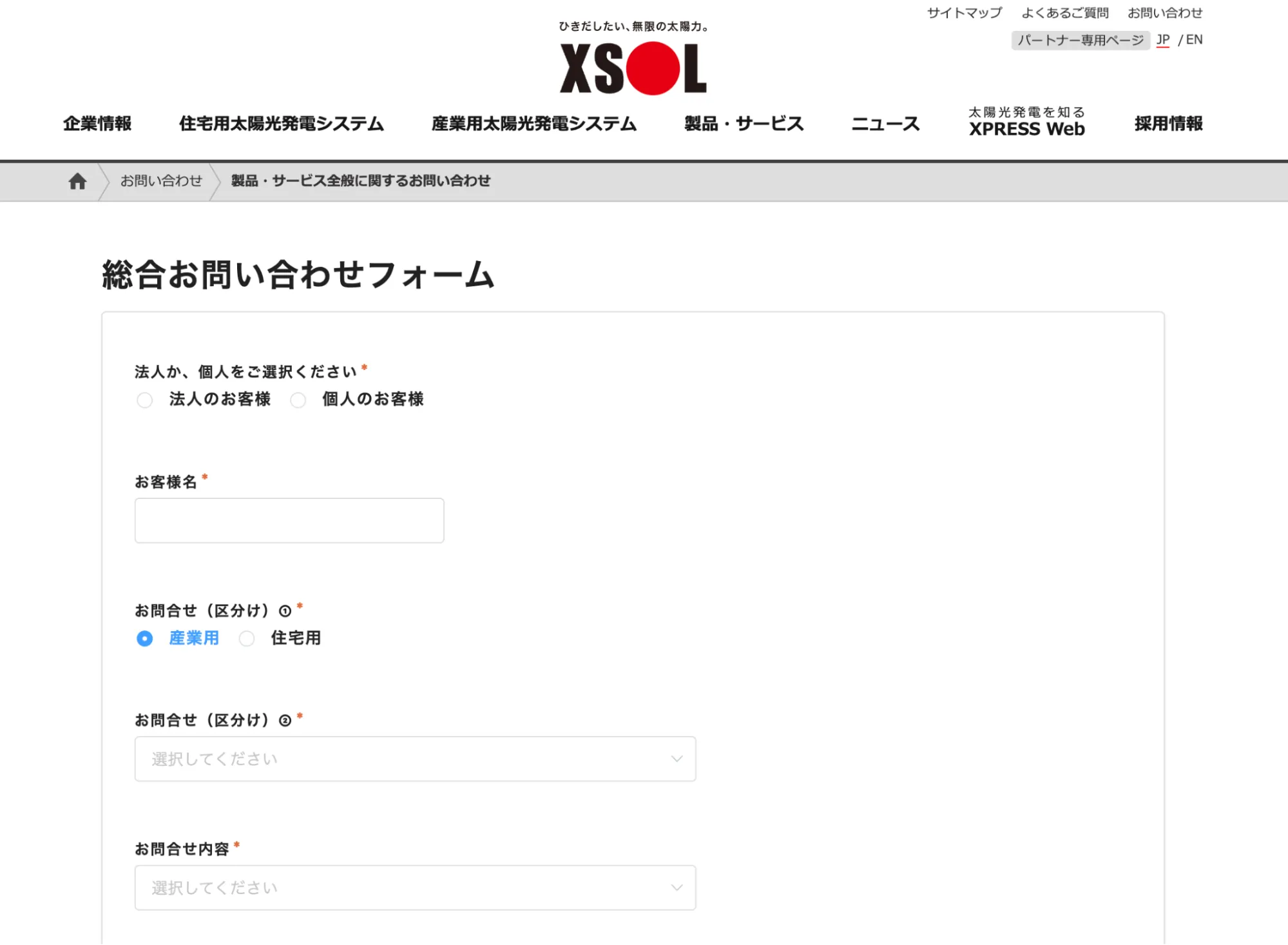 ▲エクソルHPの総合お問い合わせフォーム画面。iframeでFormBridgeのフォームを埋め込み、kintoneに情報が登録されるため、メール対応の負荷軽減につながっている。