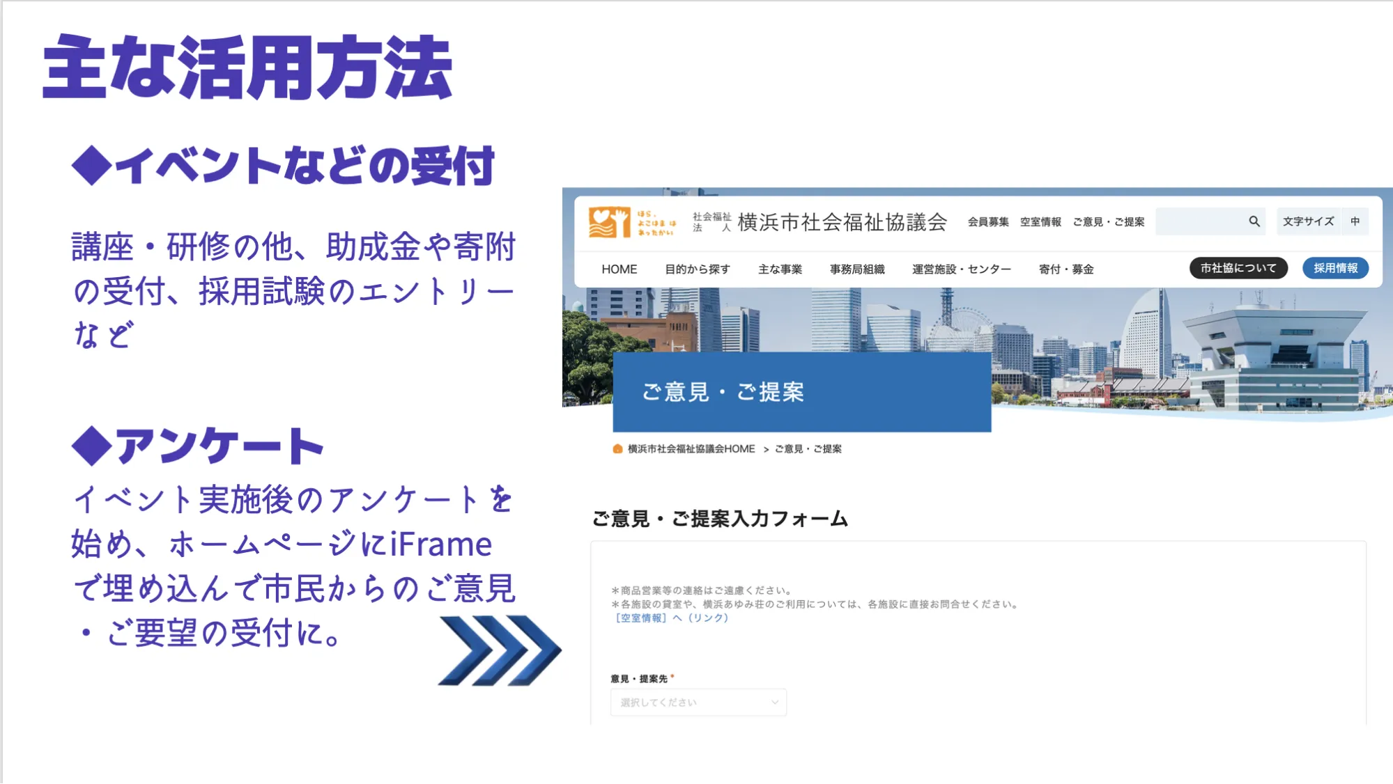 「従来通りの方法を希望される方もいらっしゃるため、紙媒体での対応も継続していますが、研修やセミナーの参加申込、社内外のアンケート、市民からの相談対応、被災地支援の職員派遣の募集など、様々な場面でFormBridgeを活用しています」(原田氏)