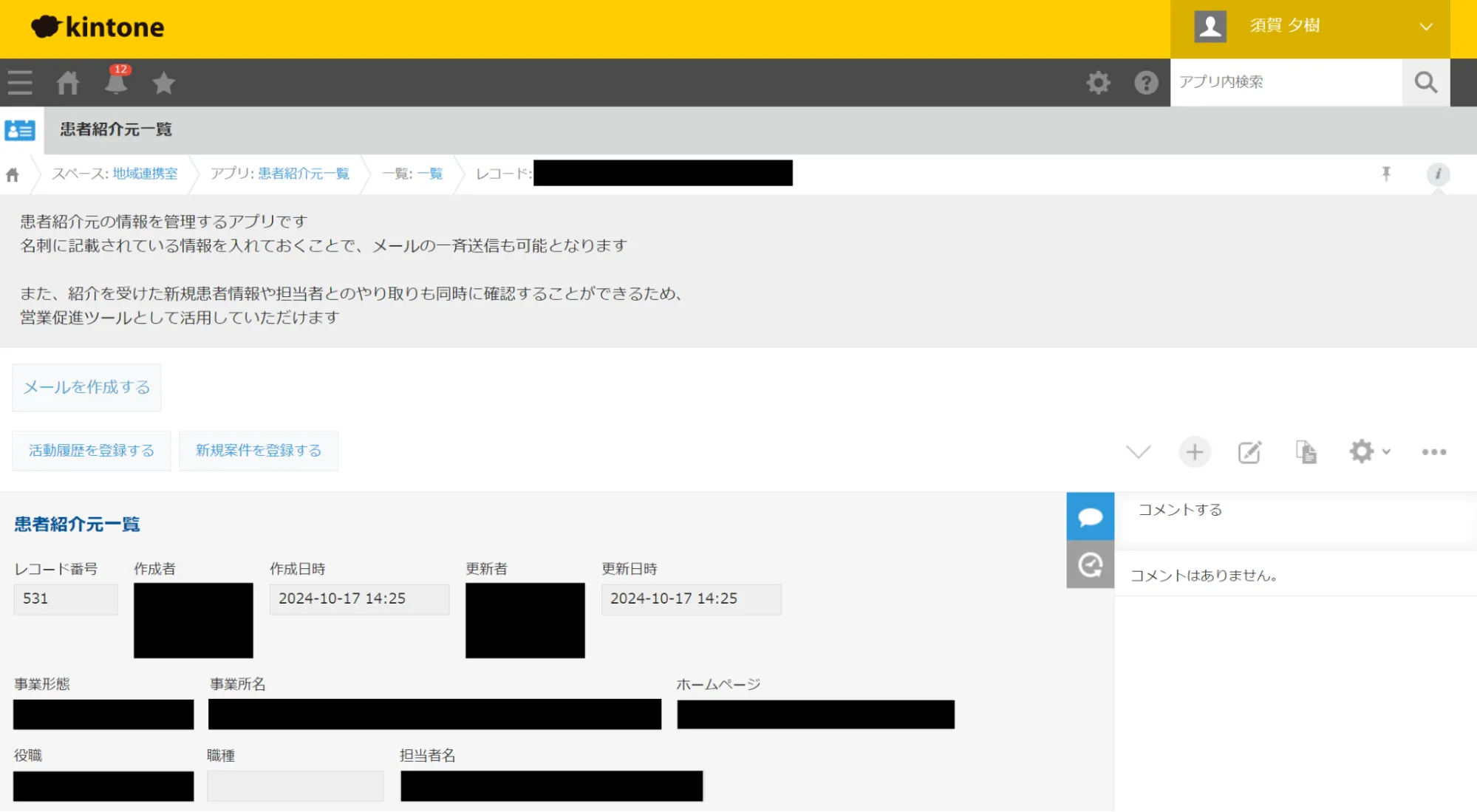 訪問診療という特性上、さまざまな医療・介護・福祉機関から患者様をご紹介いただくことも多いといいます。ゆめクリニックでは患者様をご紹介いただいた施設様情報をkintoneで一元管理し、将来的には営業ツールとして活用したいと考えていると言います。