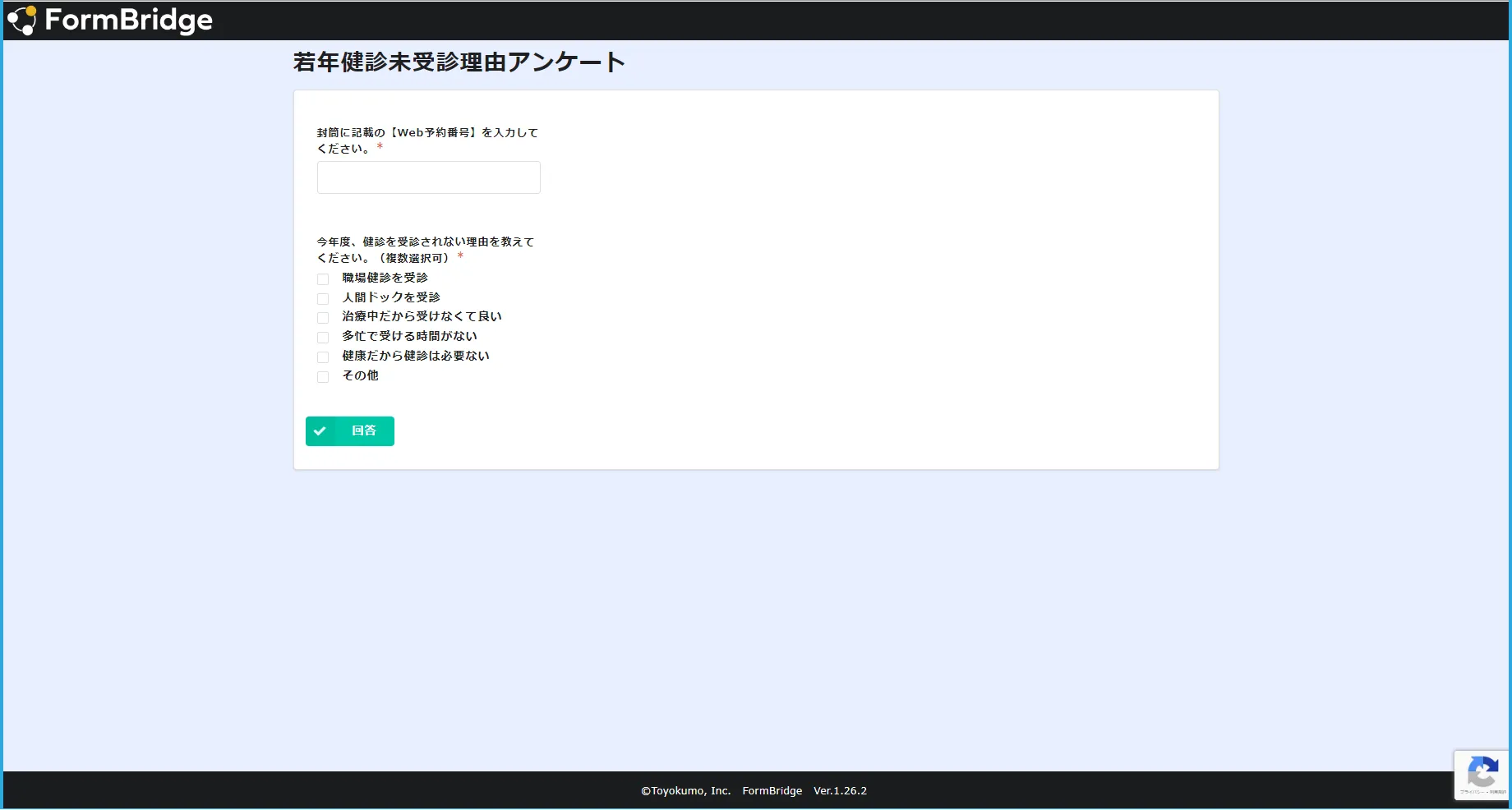 また、健康づくり課が実施していた健康診断未受診者に対するアンケートもこれまで紙で行っており、集計作業に時間がかかるという課題がありました。そこで、物品管理と同様に紙のアンケートをFormBridgeに置き換えました。