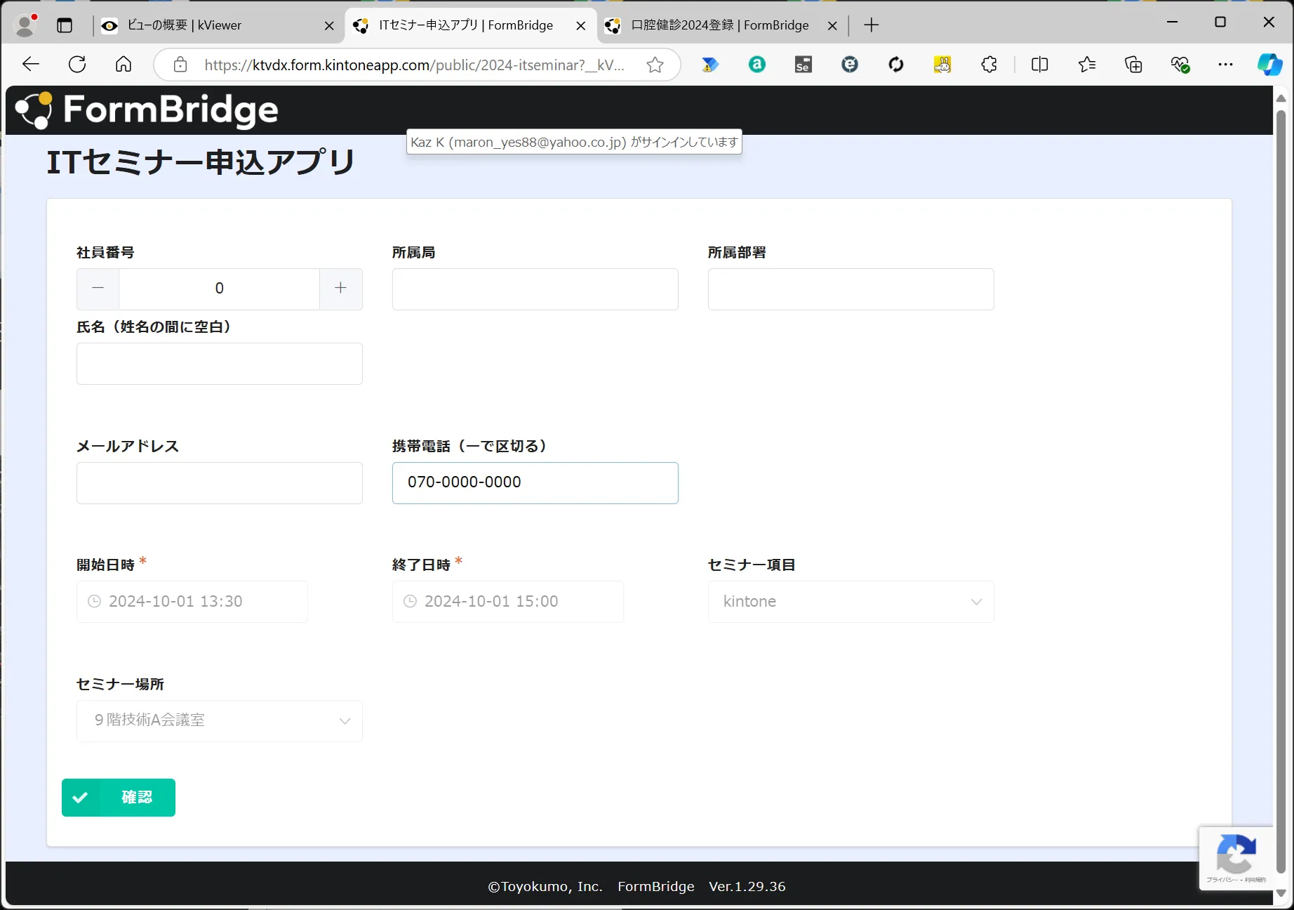 ▲FormBridgeで作成した社内ITセミナーの申込フォーム