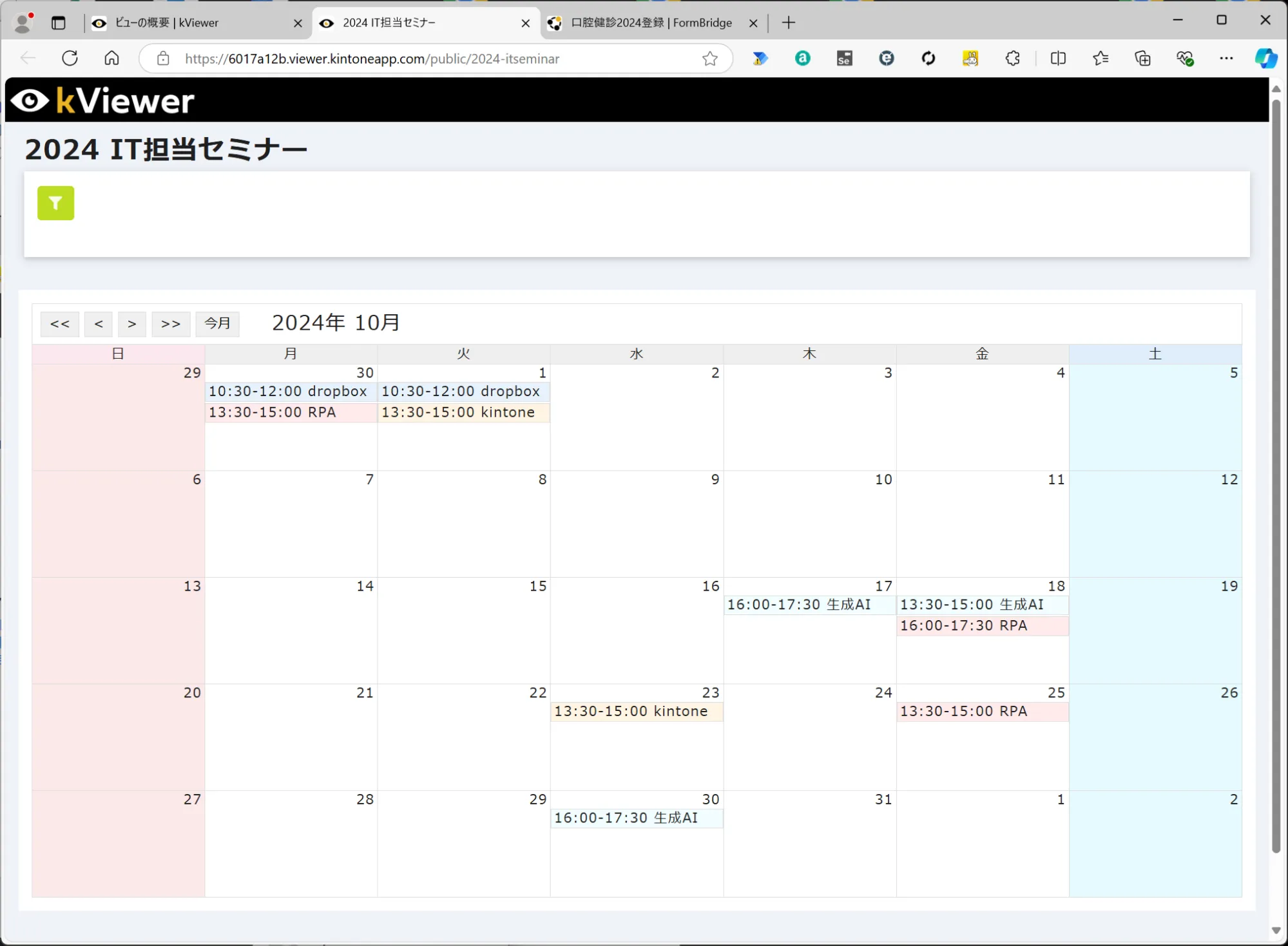 ▲kViewerで作成した社内ITセミナーのカレンダービュー