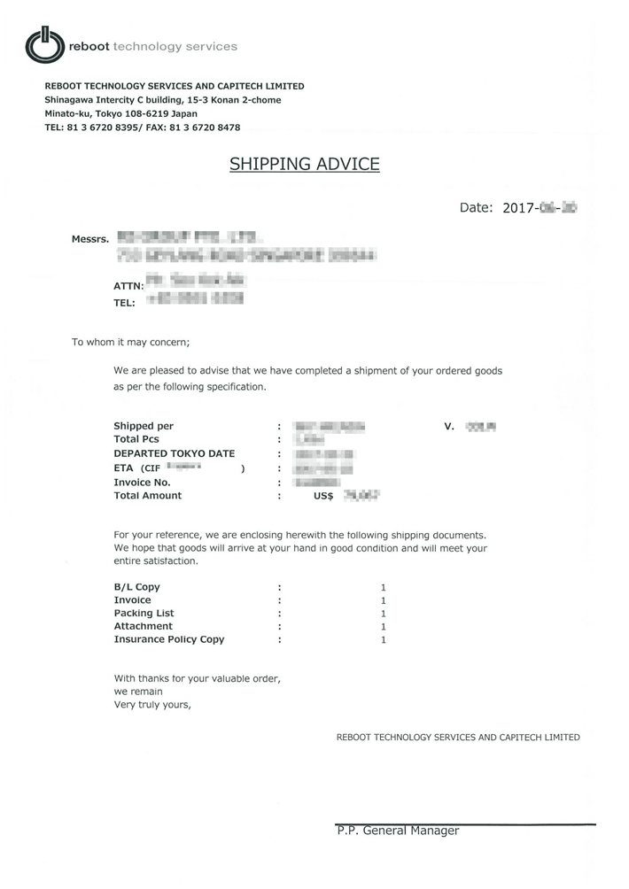 (出荷の際に利用しているアプリと、船積通知Shipping Advice)