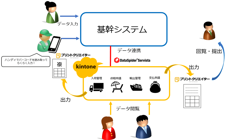 基幹システム、kintoneとプリントクリエイターとの連携