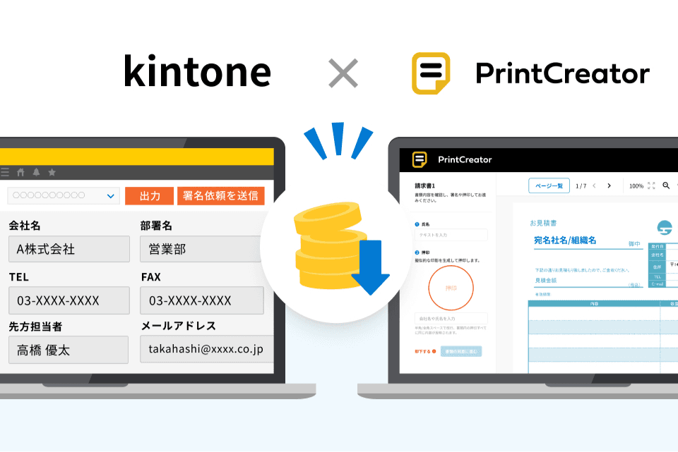 PrintCreatorはkintone連携を前提としたサービスなので、kintone連携のために他サービスを利用する必要はありません。PrintCreatorの利用料金のみでkintone連携が可能です。