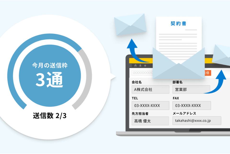 すべてのコースで、毎月3通の無料送信枠を利用できるので、手軽に電子契約を始められます。